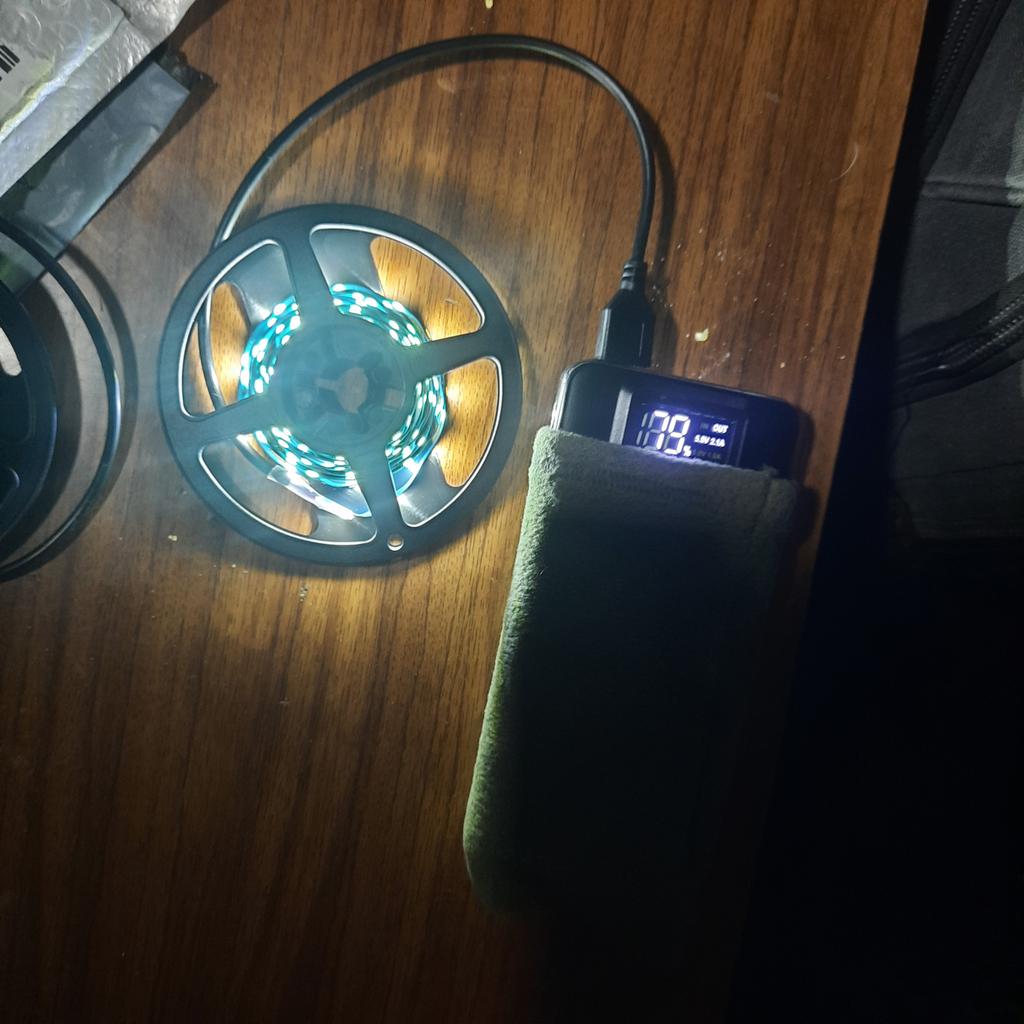 Works great with a power bank, very bright