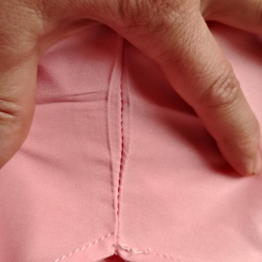 The fabric is nice, it's not sewn very neatly, there are some protruding threads on the outside of the sleeve fold