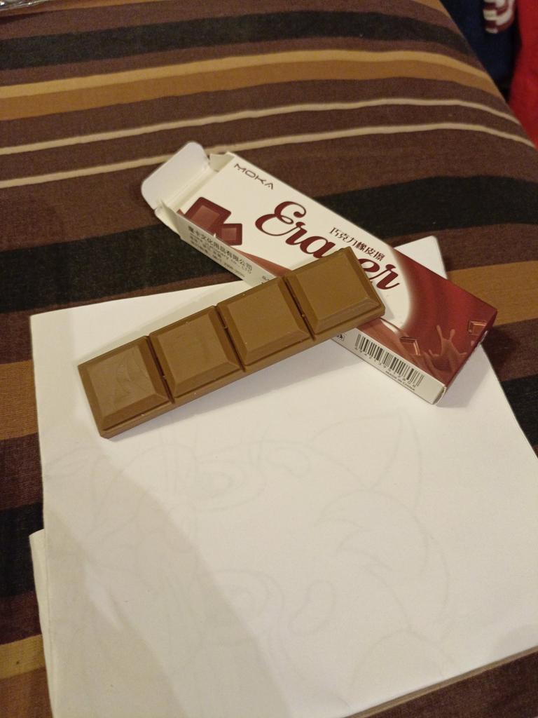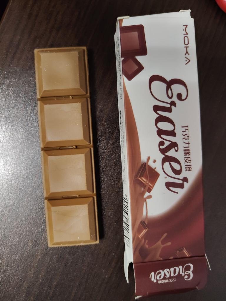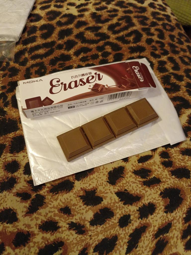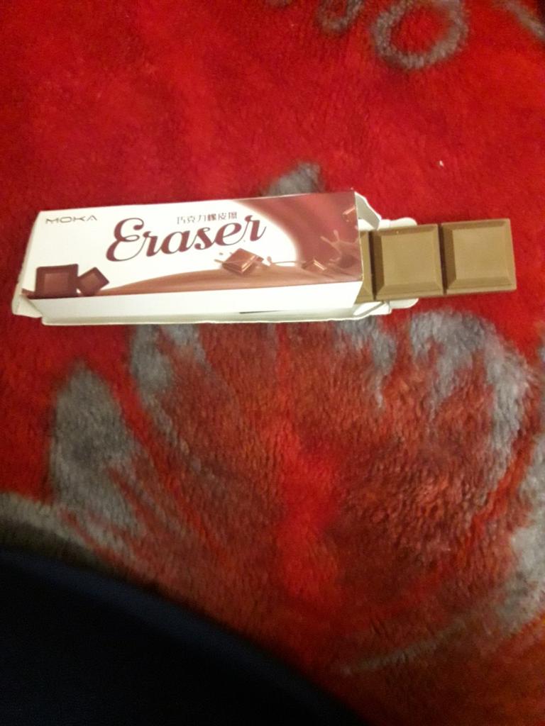 I thought it was a chocolate box as a gift and put it in the fridge, but then I look and it’s an eraser.