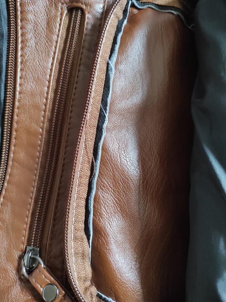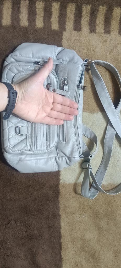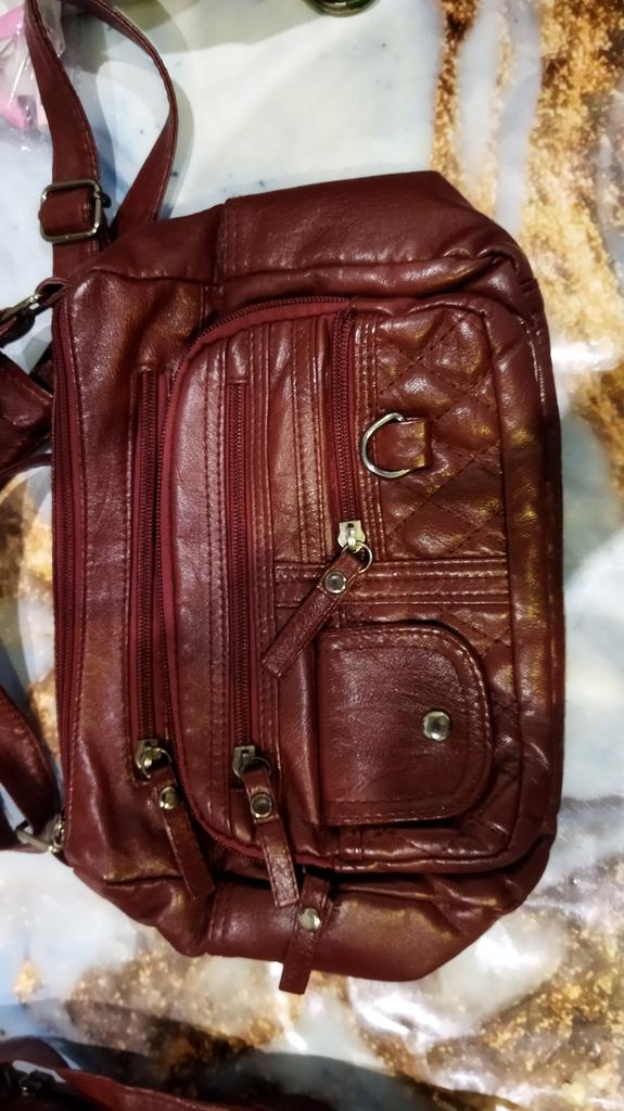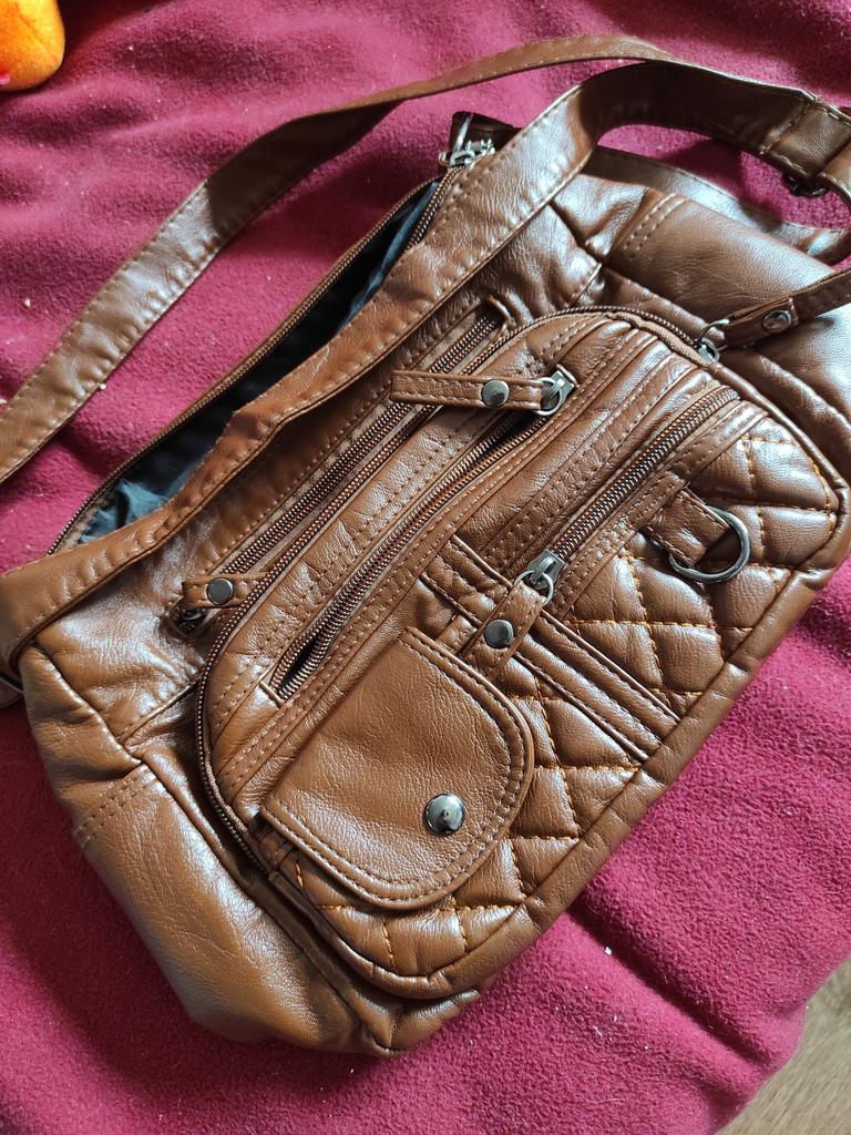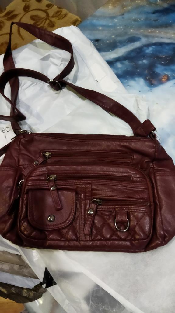 Good and comfortable handbag. Many zippered compartments and pockets. Soft.