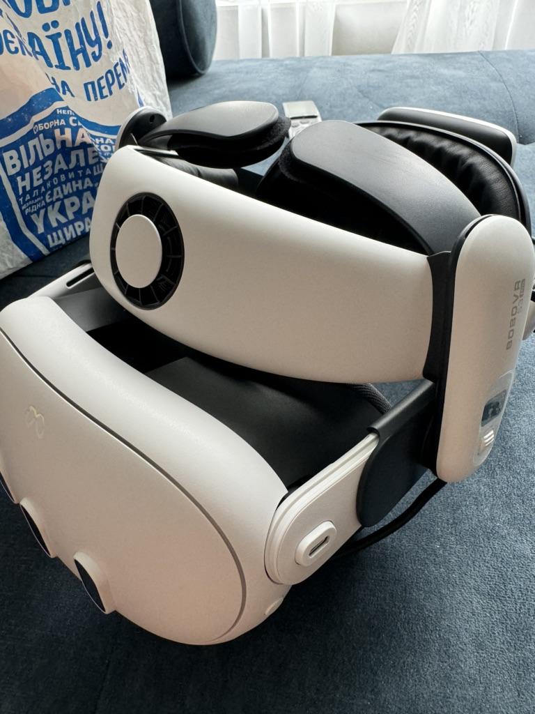 Delivered in two weeks. High-quality painting. The battery quickly charges the glasses. Withstands wild tracks in beat saber and stays on top. I did not understand the blower, the air does not go anywhere and something blows from above, it only makes noise and drains the battery