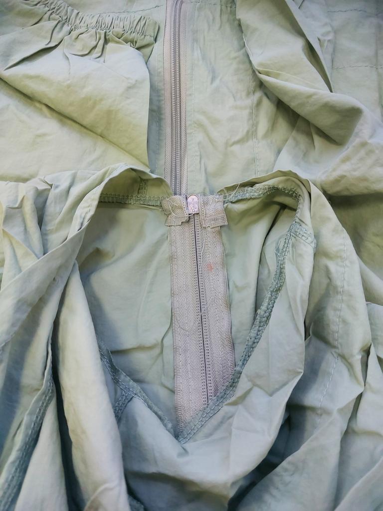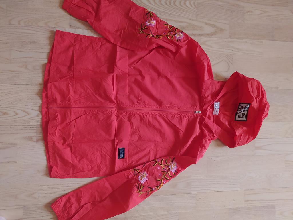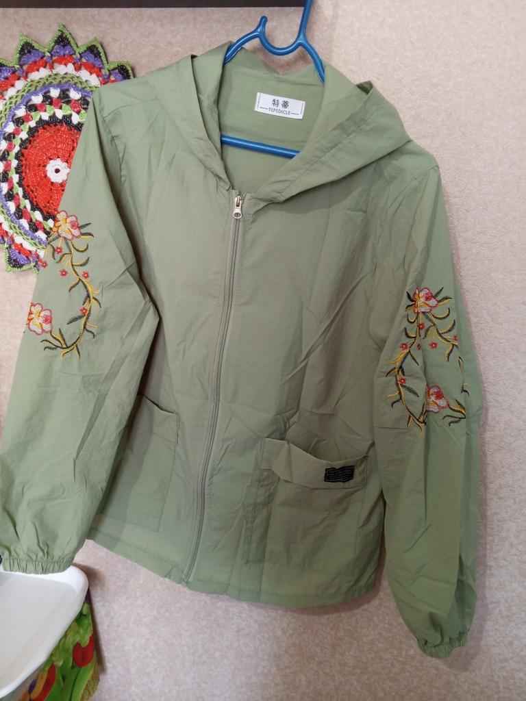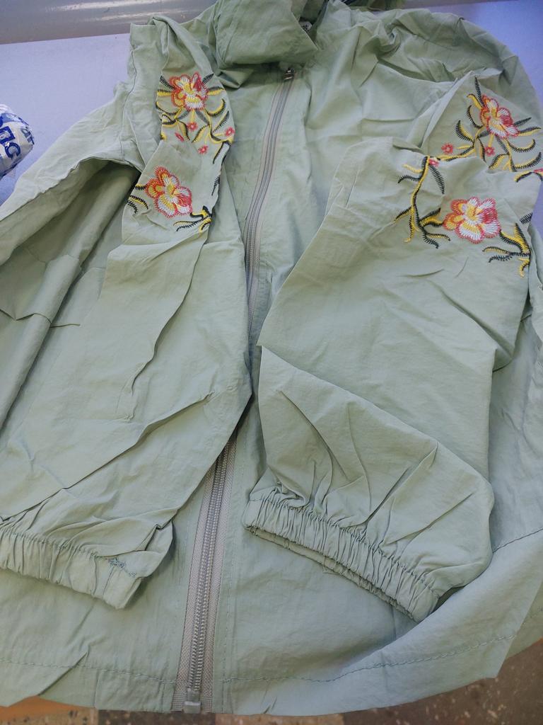 I don't know what to call this product. Where to use it, in what weather. The jacket is made of thin synthetic material. The threads on the embroidery are dangling, the threads are dangling from under the zipper.