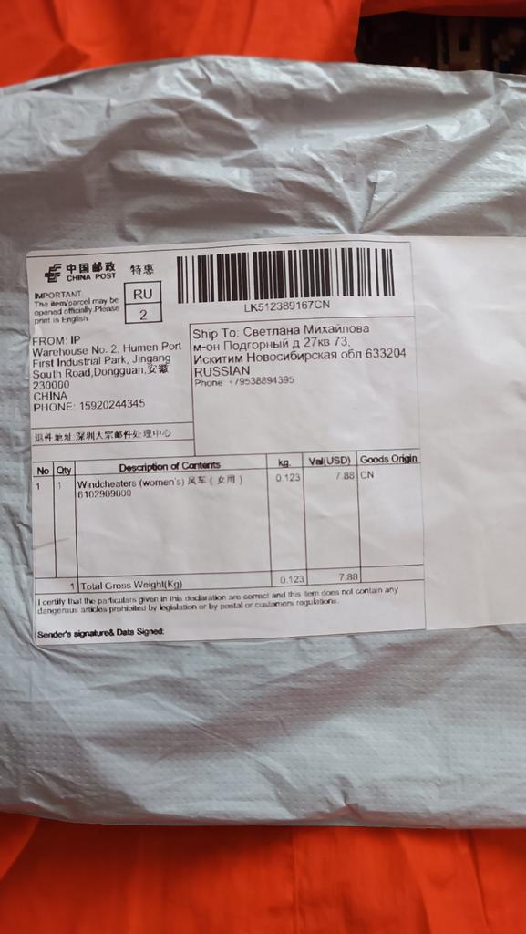 The order came very quickly. Very nice and light jacket. Thanks to the seller. I recommend