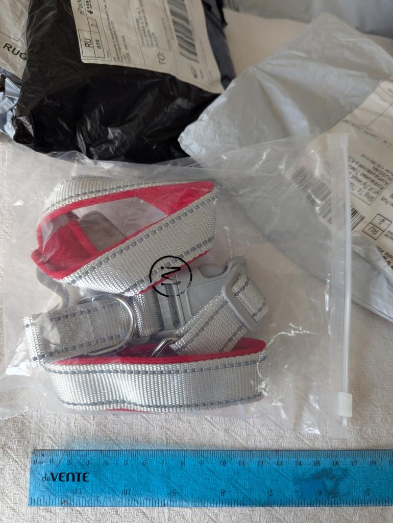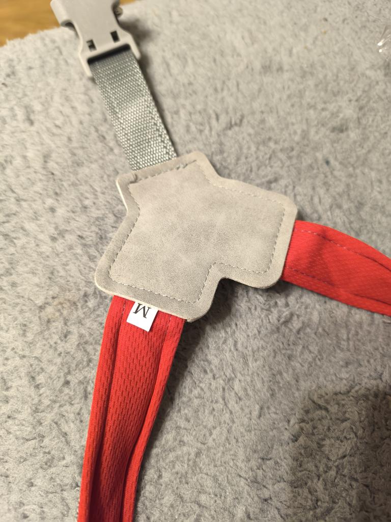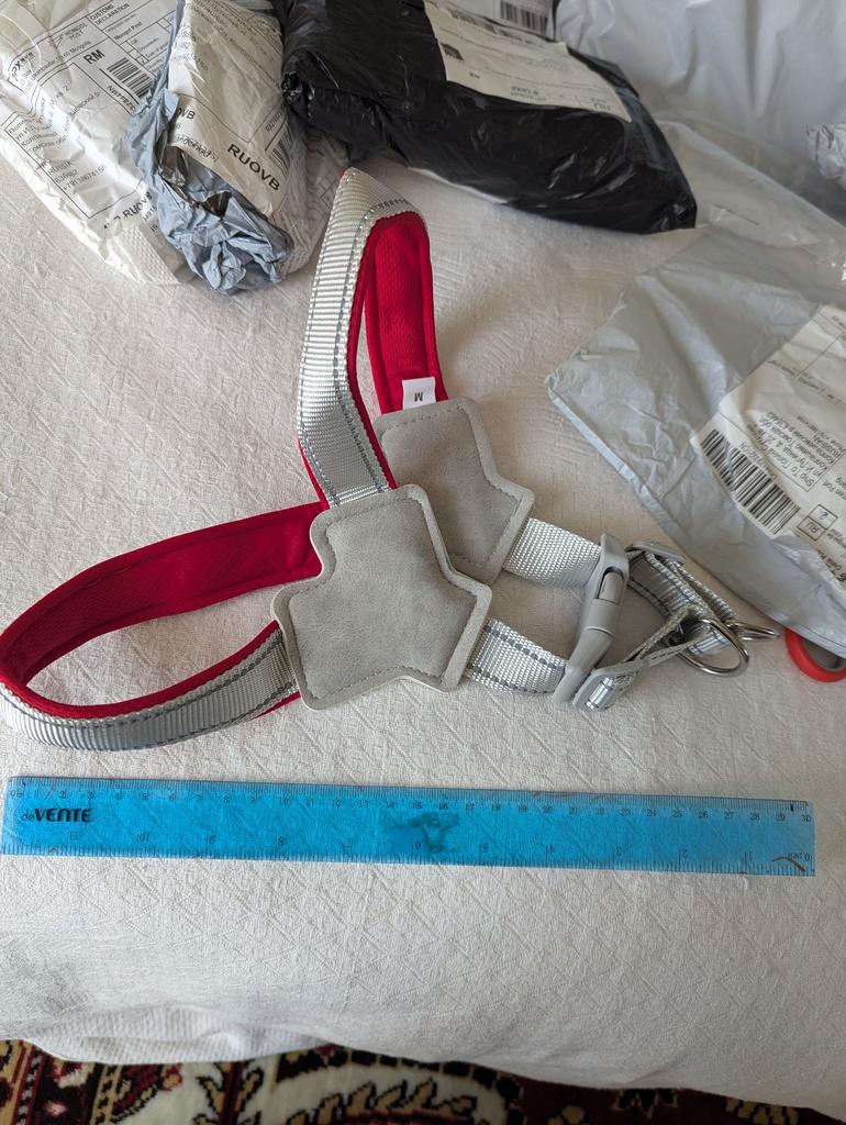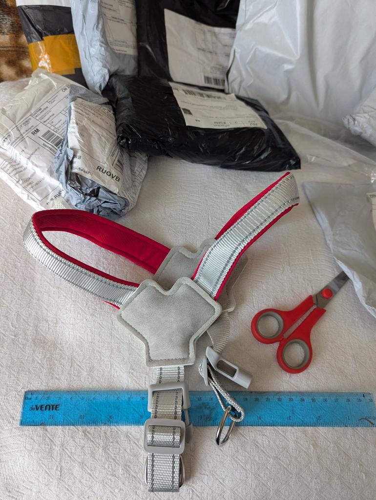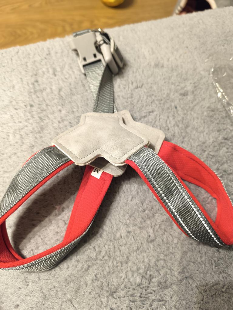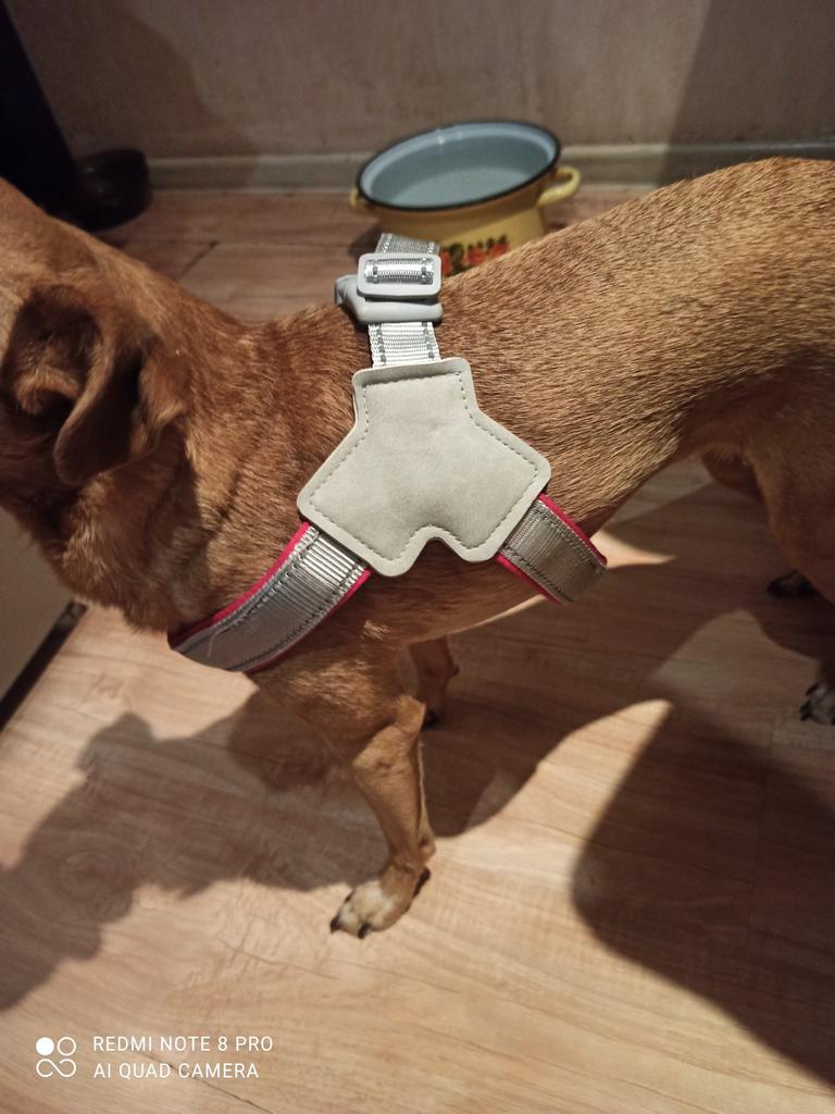 Uncomfortable harness, and the size is too big. The dog is a bit shocked.