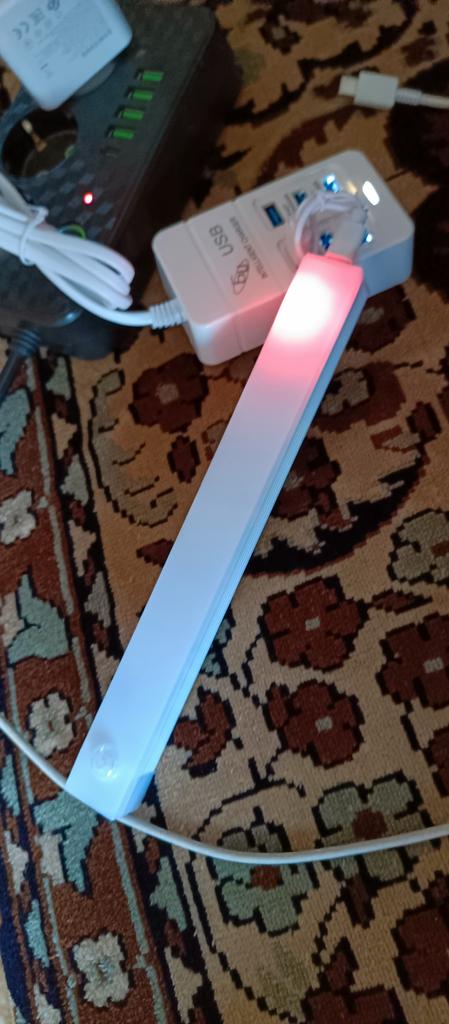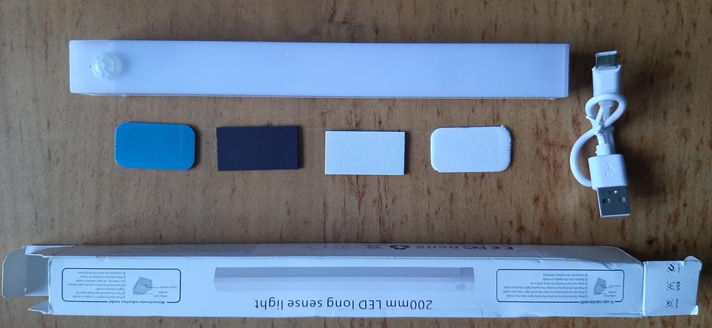 Excellent light, with a motion sensor, turns off by itself after a while when you move away, sticks with magnetic tape, everything is included in the kit, rechargeable Type C type. I am supplementing the review after use: it discharges quickly😐, you have to charge it daily.