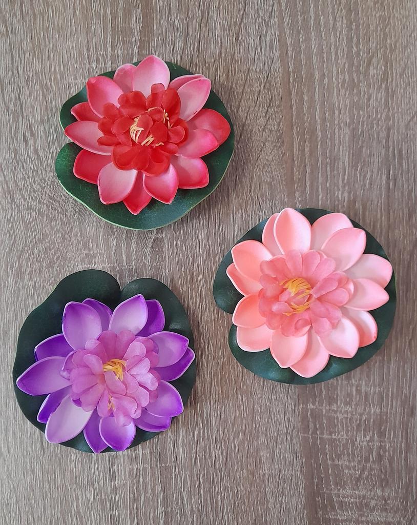 Very beautiful lotuses. Small, just as I needed. That's why I ordered them. The width of the leaf, together with the flower, is 10 cm. Thank you for the prompt delivery. I recommend the product!)