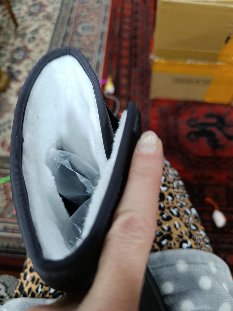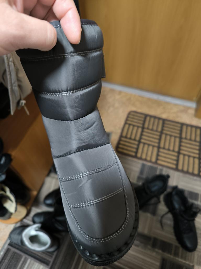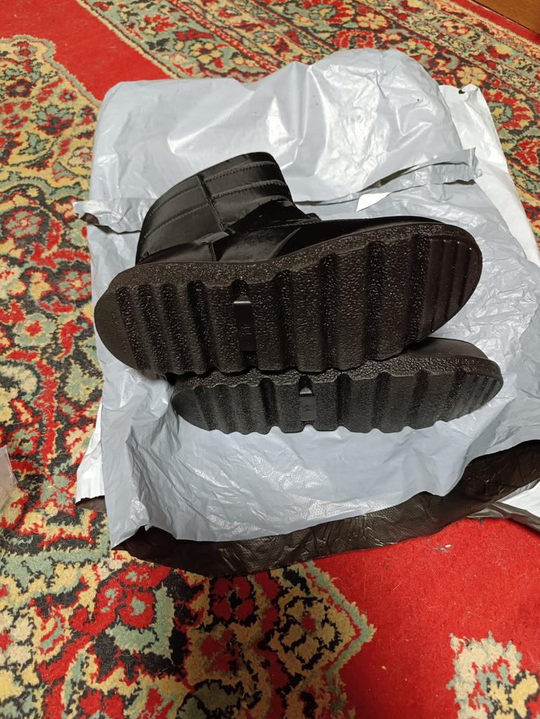 I never thought that boots could be received without a hard package (the boots were packed in an ordinary plastic bag!!) and all the way, and the parcel was traveling for more than a month! this bag was thrown around haphazardly. And what kind of appearance of the boots can we talk about (the boots are crumpled, and their packaging is torn in many places!!!) Couldn't they find a box for the shoes???