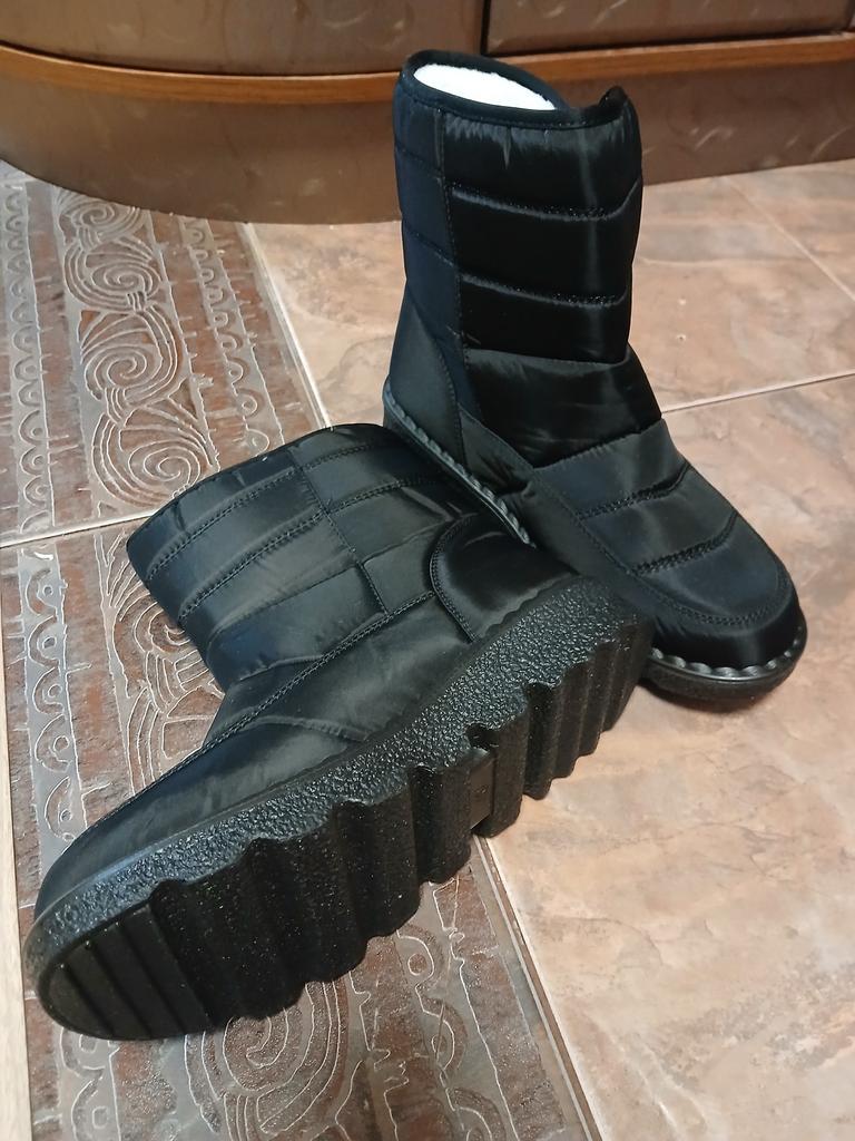 The size corresponds to the table: for 24.5-25 cm, size 40 fits perfectly (you can also put on warm socks). The boots are very warm, good quality, the color is as in the picture. The sole is stable, on a gravel road it seemed thin, but on a flat surface everything is fine. The feet are very comfortable.