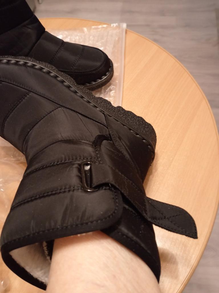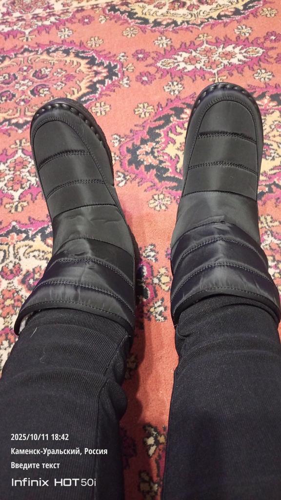 The boots are light, comfortable, the foot feels comfortable. For my wide foot of size 38, size 40 boots fit. We haven't had cold weather yet, so they haven't passed the test yet, only the fitting.