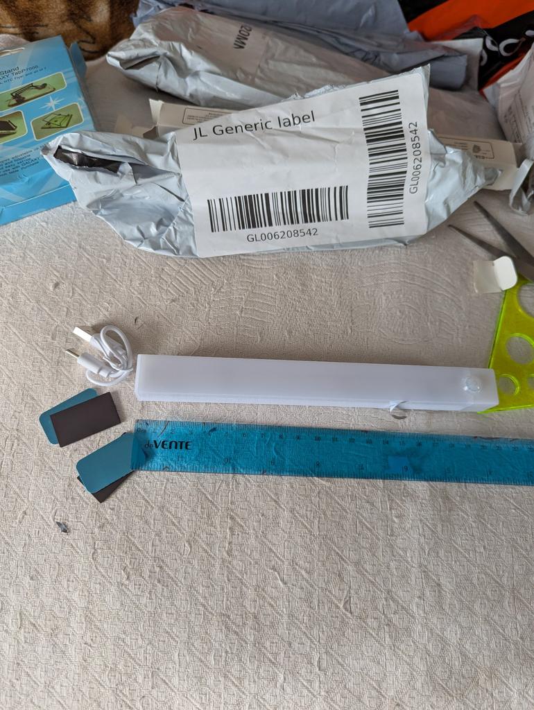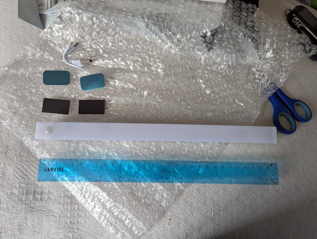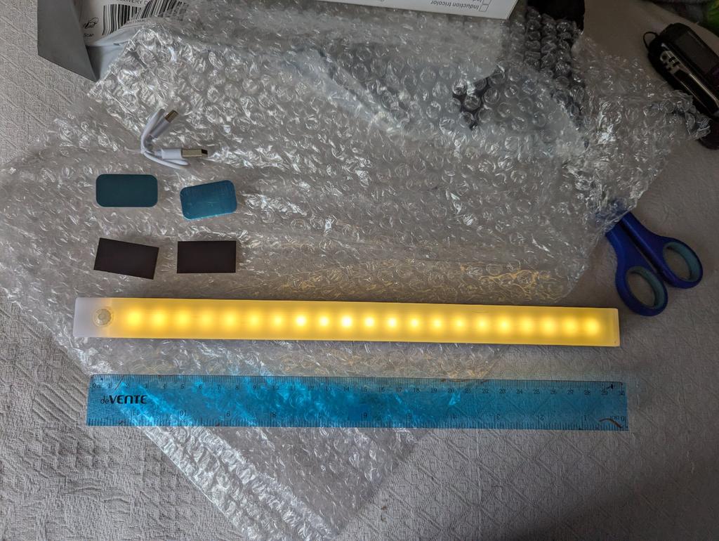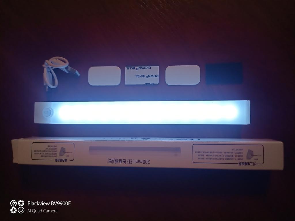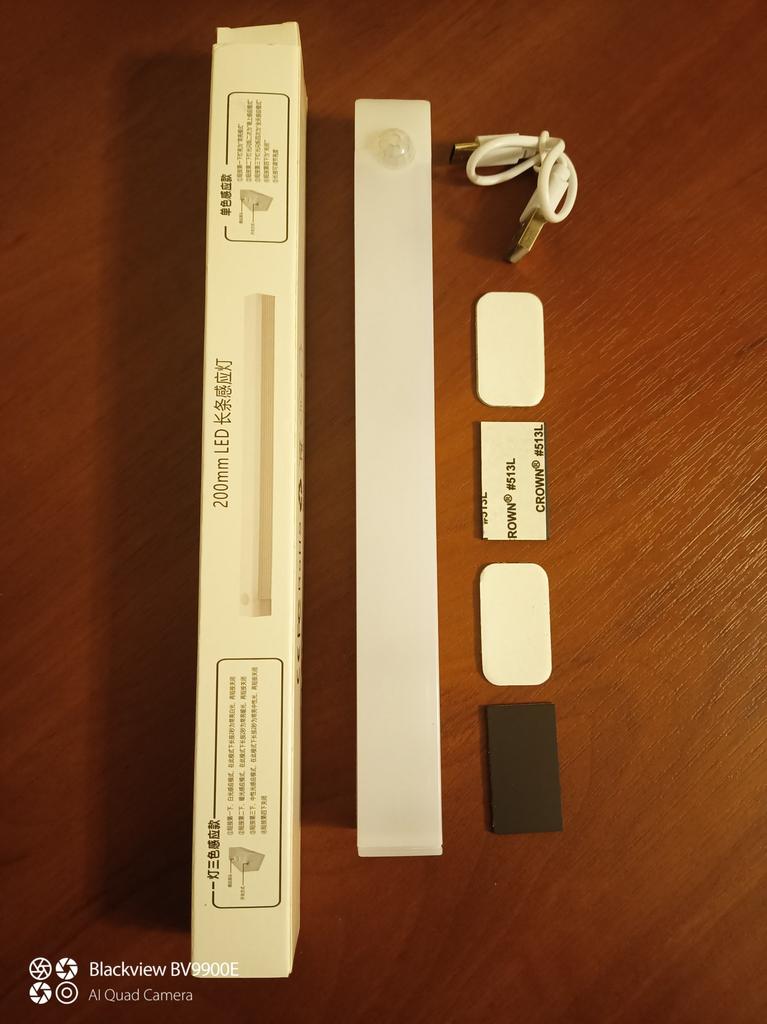 It shines well, the sensor works, turns off after about 30 seconds. The kit includes 2 Velcro strips and 2 magnets that don't hold at all.