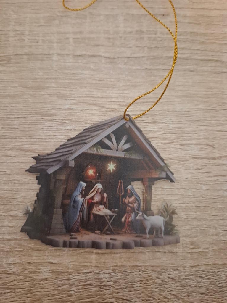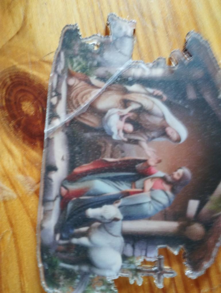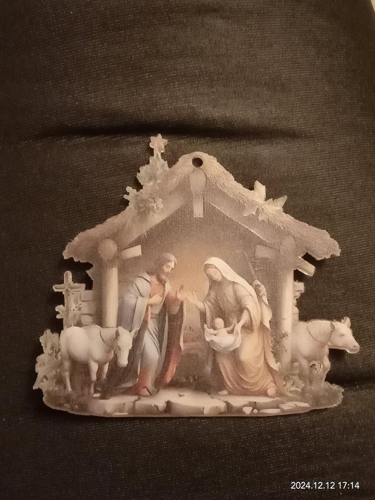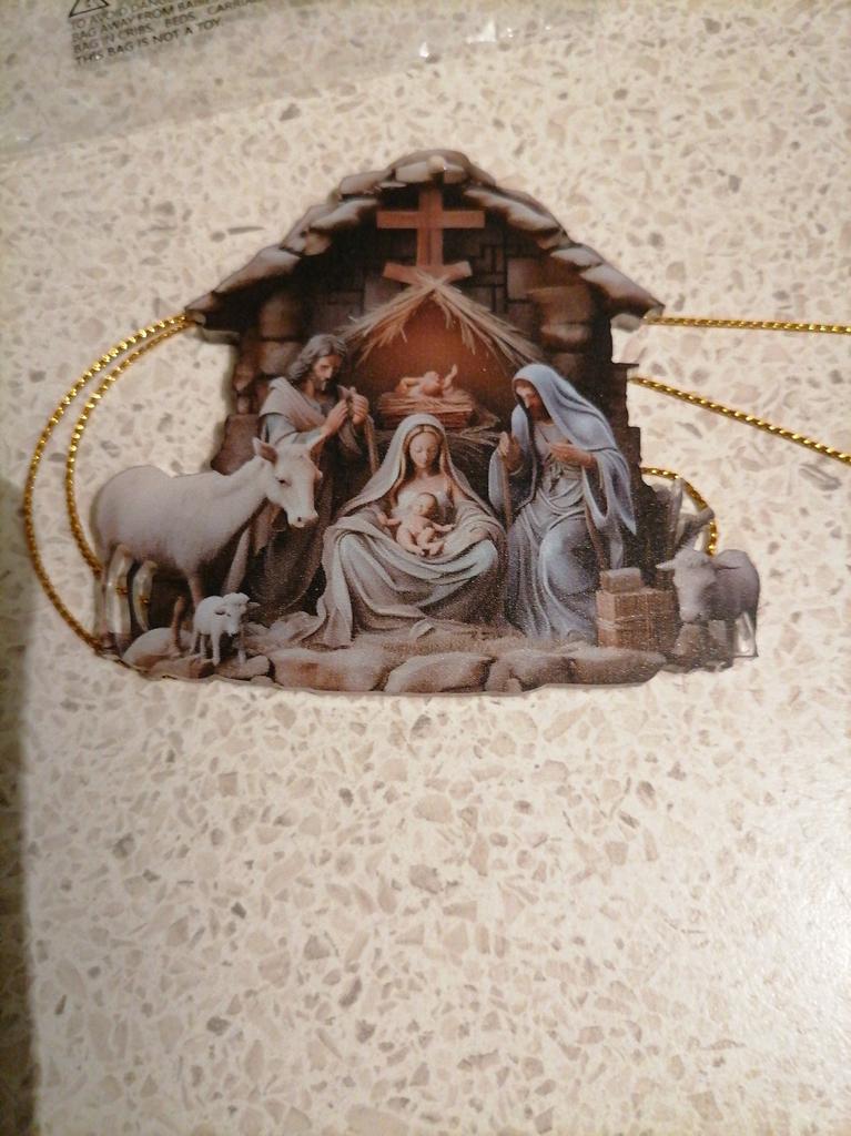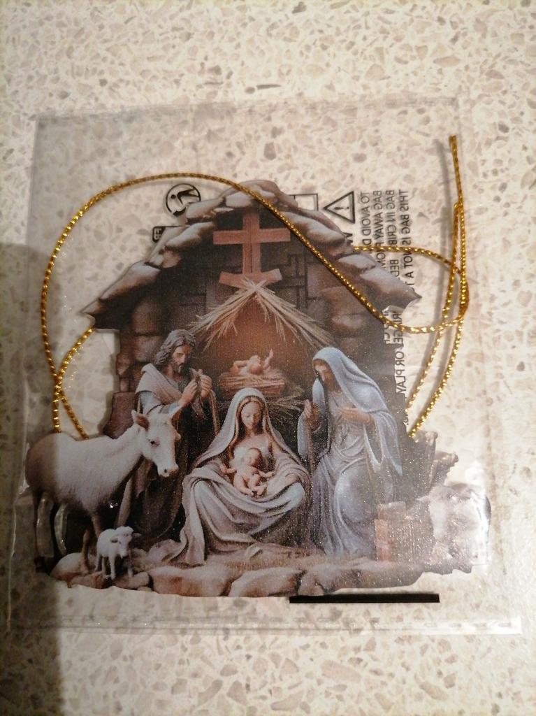 Don't be fooled, this is a flat picture on plastic, not a full-fledged Christmas tree decoration.