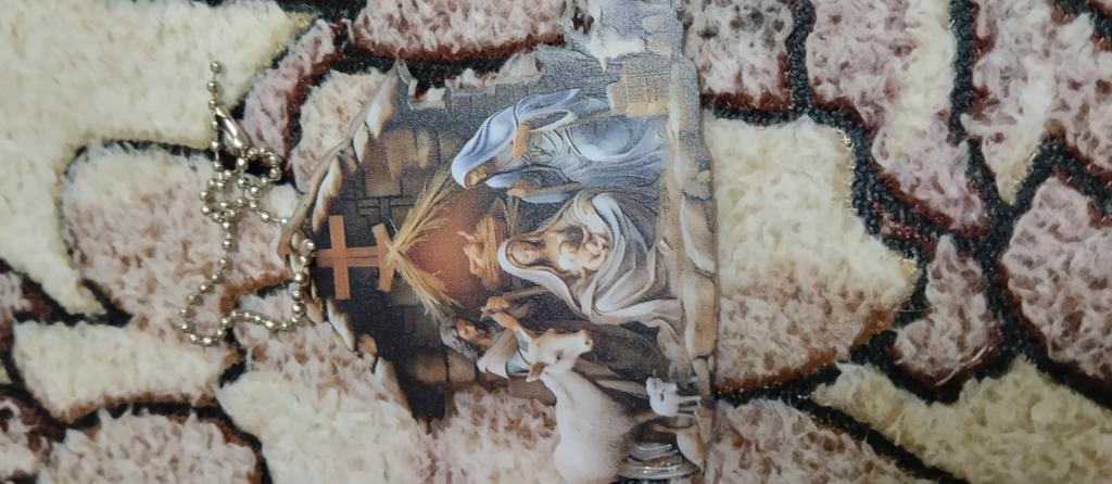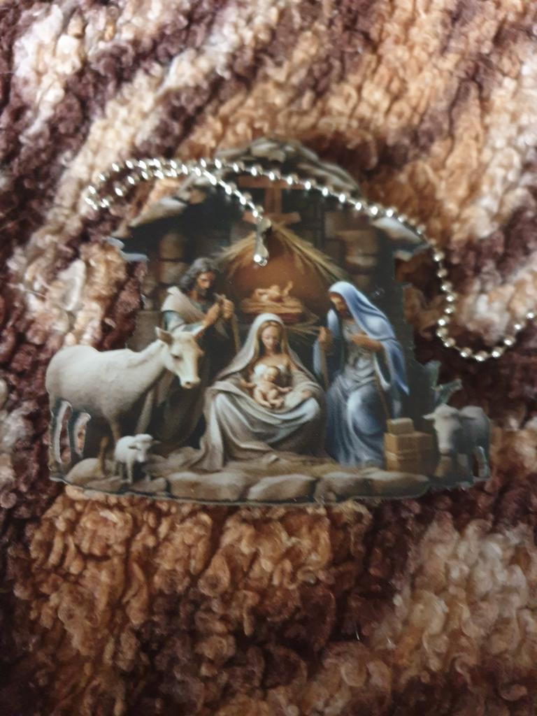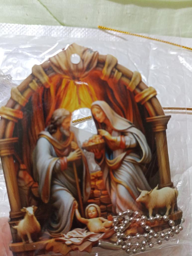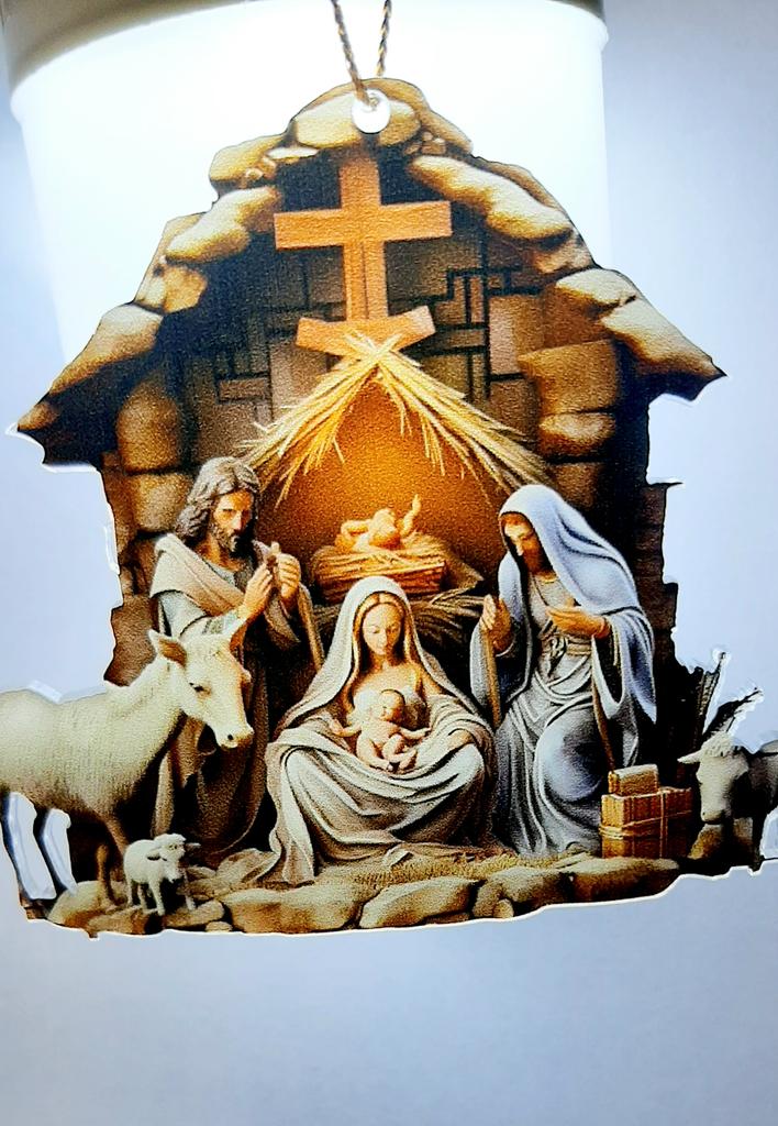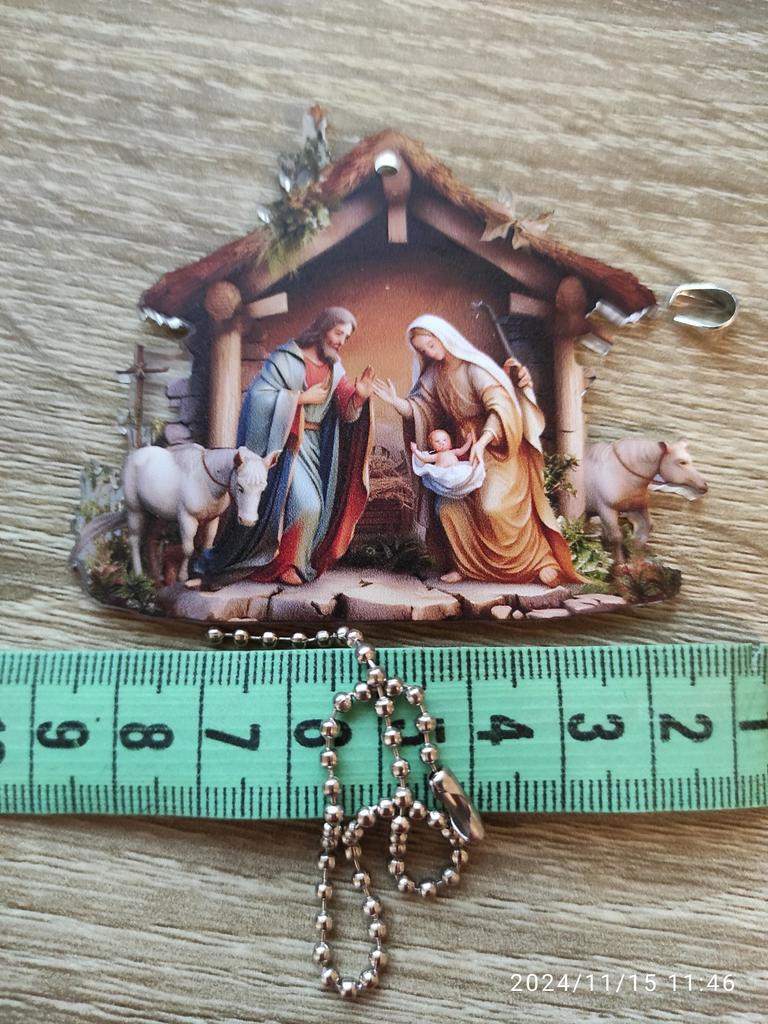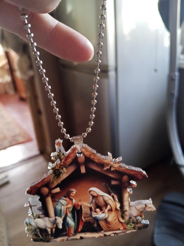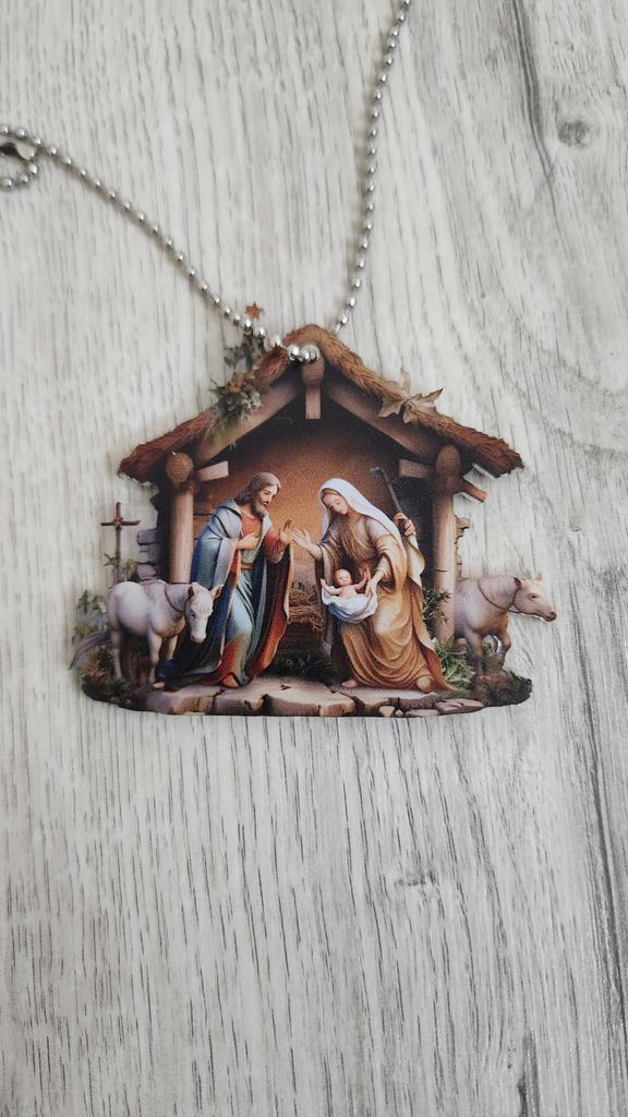 Christmas Pendant Ornament Jesus Family Prayer Scene Pendant Bright Colored Religious Symbol Pendant for Home Car