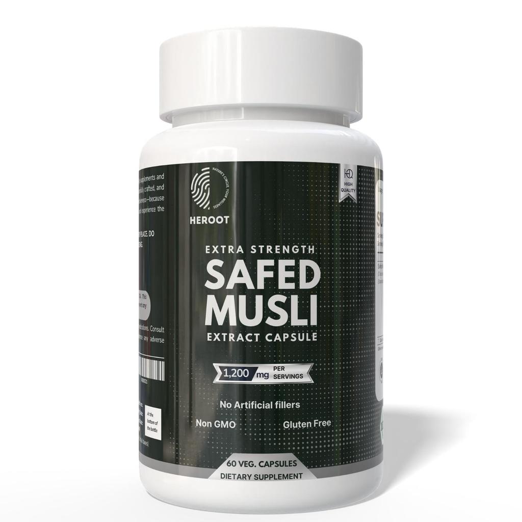 Heroot Safed Musli 1200 mg Capsules are formulated using Safed Musli (Chlorophytum borivilianum), a traditional botanical ingredient commonly included in Ayurvedic formulations. The product is presented in a convenient capsule format designed for regular dietary use.