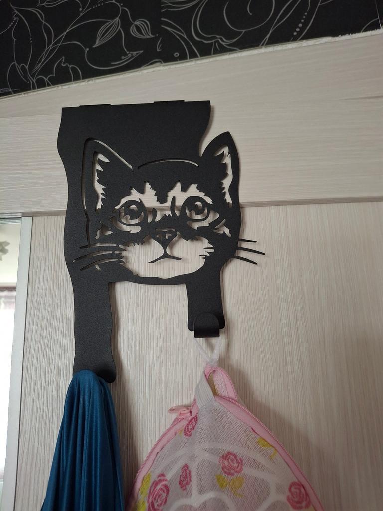 Unique Over The Door Hangers: Black-Coated Metal Hooks. Stylish Storage for Home & Office, Special Gift for Cat Aficionados.