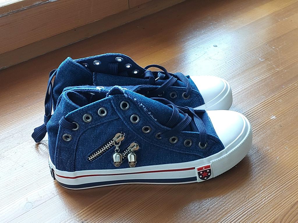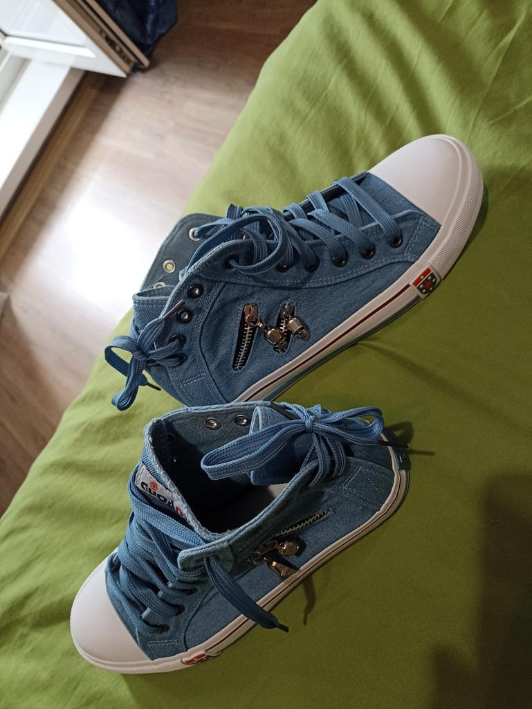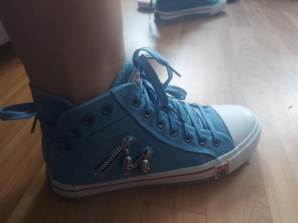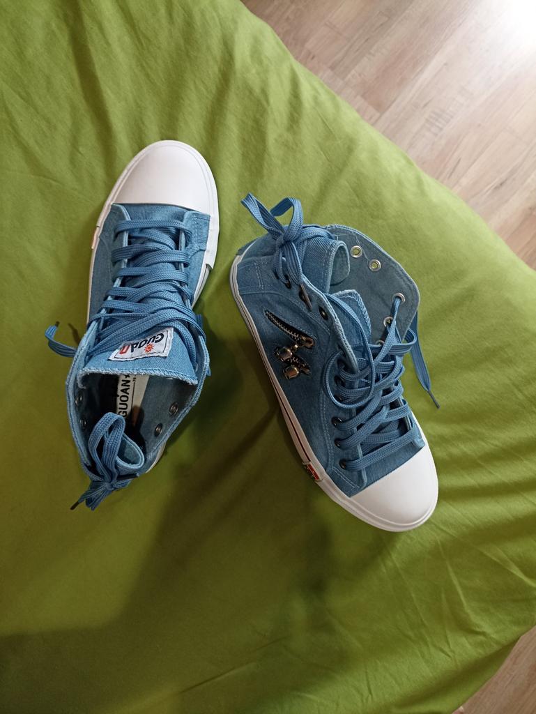 Sneakers are super!!!!! Blue. Like in the photo. The size fits! Thank you! ❤