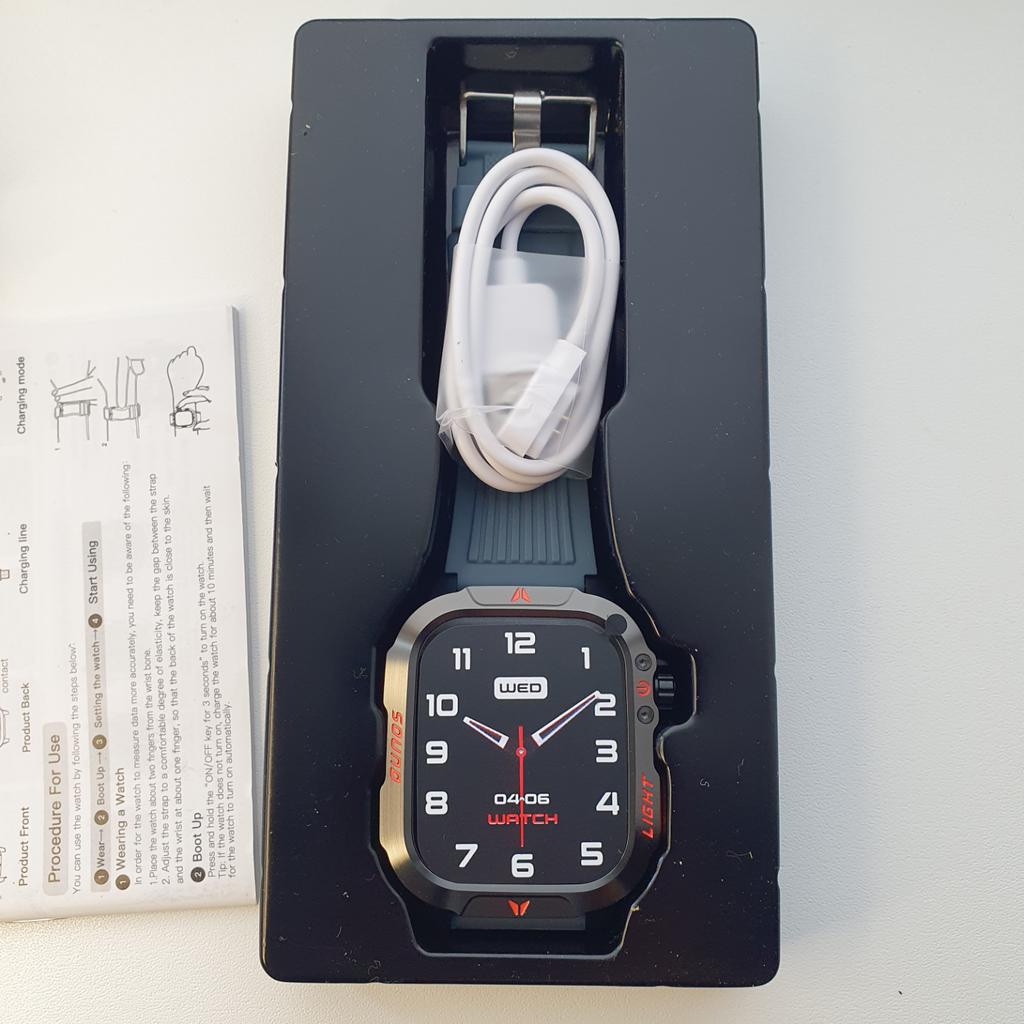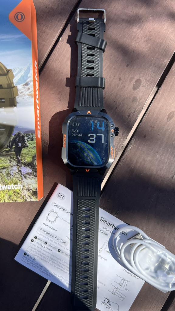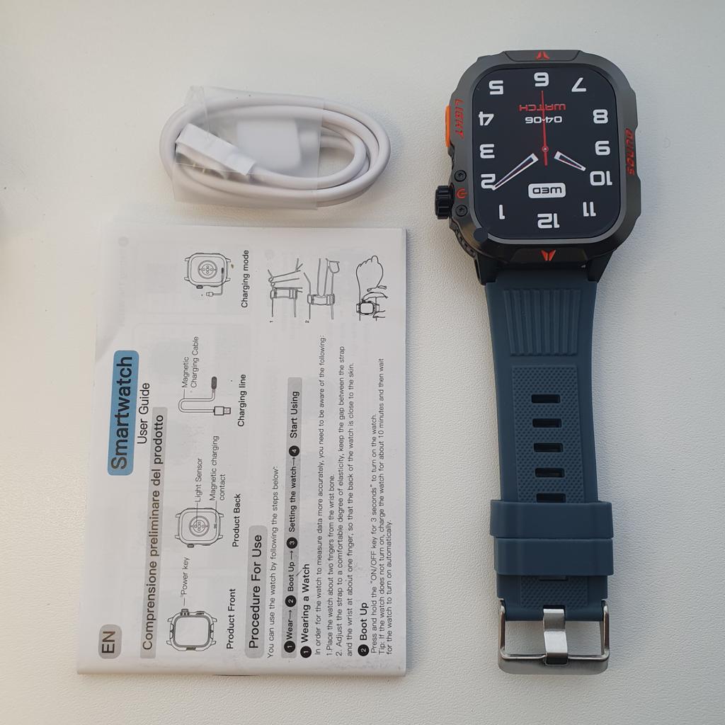 A magnificent smartwatch for men, packed with features. Its quality is excellent; you can tell by its robust and durable feel. It's beautiful to look at and has a great, sporty look. It was a very good purchase for the price and quality; I recommend it. 👍🏻👌👌🏻 😉 👌🏻👌👍🏻. 📦Package Content: Un Smart Watch. silicone strap. A ping USB charger cable. User manual. 👍🏻Pros: Delivery to Spain within 25 days. ✈️ Very well protected for the trip. Fantastic presentation in its box. excellent product quality. High quality silicone strap. Ping charger cable. Various menu modes. heart rate monitoring. step counter. Remote control for your mobile camera. Call reminder, SMS notifications. sleep monitoring. Measures oxygen in the blood. Measure blood pressure. Social media support. Screen illumination at the touch of a hand. With touching the screen you reject calls. Real-time weather forecast. Calculator. Music and remote photography. Sliding your finger across the screen or tapping the pin navigates through the menu. very easy to use. Multiple languages on both the watch and the mobile app. It includes a flashlight. Battery capacity 🔋 600 mAh. Compatible con IOS y ANDROID. 👎Cons: nothing to write home about. .
