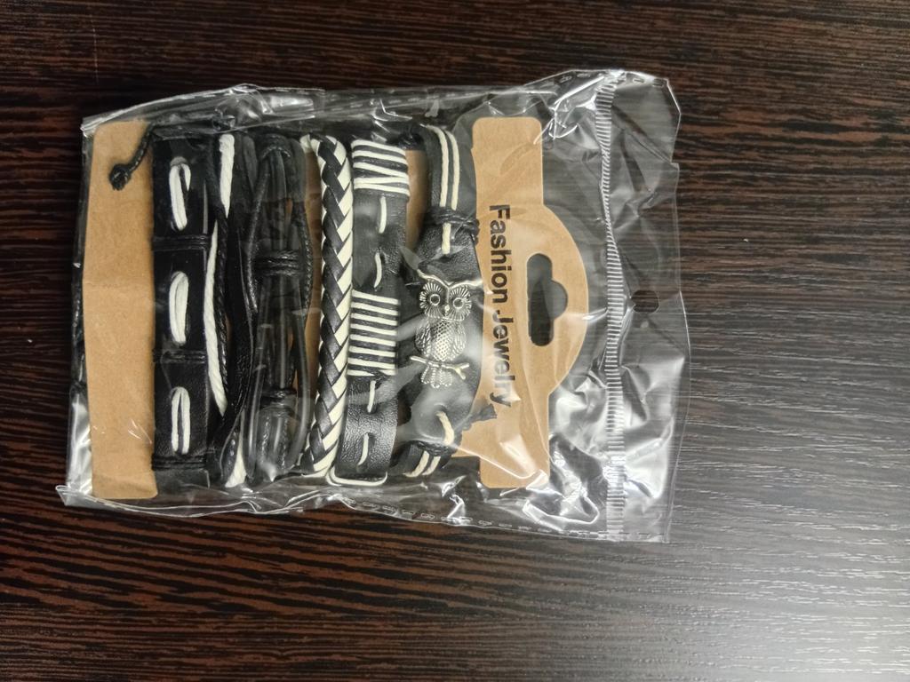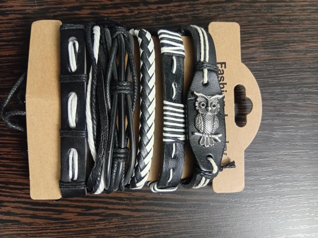 Vintage Men's Leather Bracelet Fashion Handwoven Multi-layer String Black Punk Rock Jewelry Accessory Set