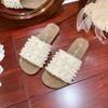 French Fairy Style Pearl Cool Slippers Female Outer Wear Spring and Summer New Flat Lazy One Pedal Beach Sandals