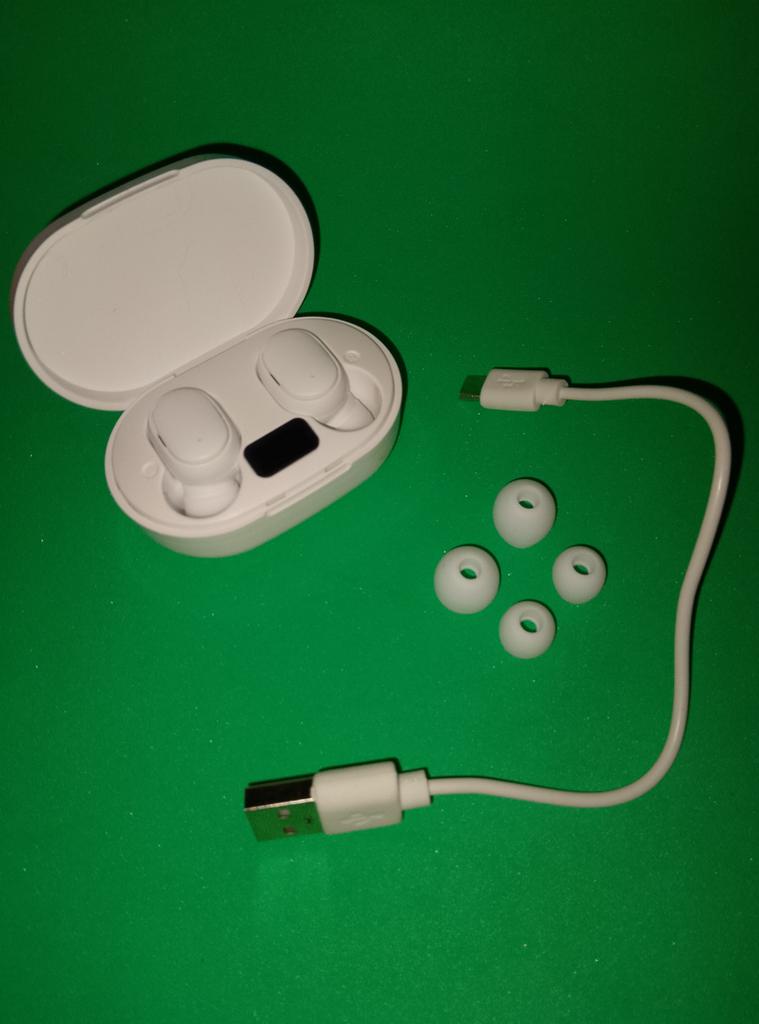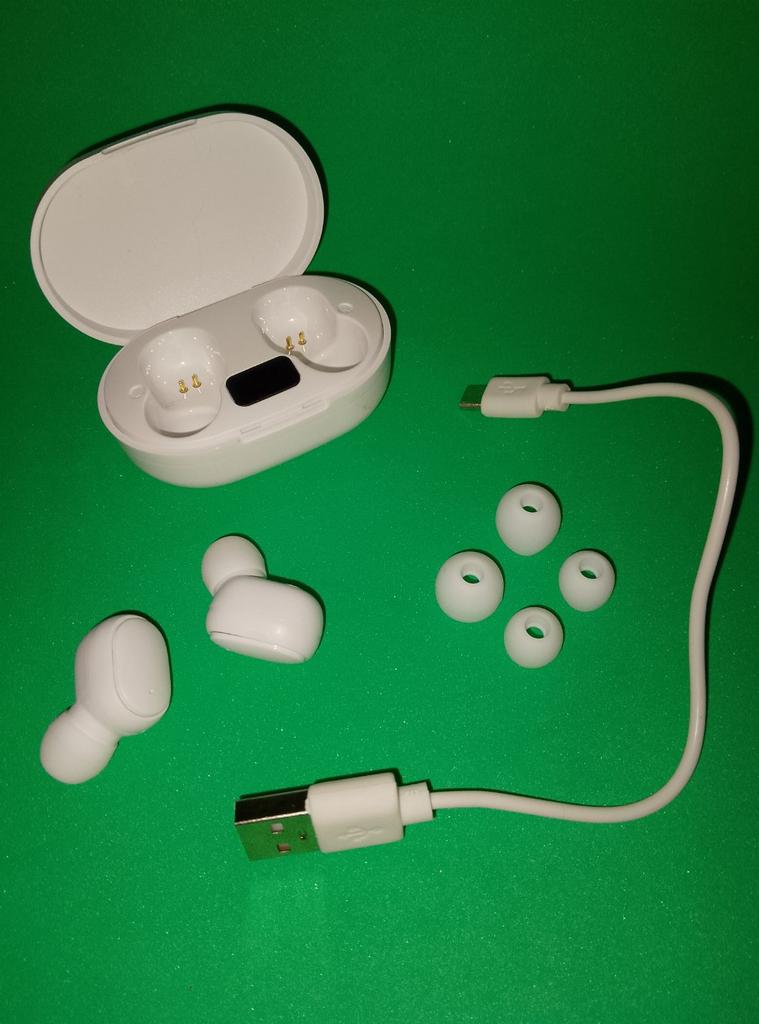 Wireless bluetooth headphones. Included: ✔️Headphones. ✔️Cable for charging the case. ✔️User manual. The headphones connected via Bluetooth quickly. The case lid snaps shut and the earbuds are magnetic. The case shows the charging level of the case itself. To listen to music, the charge lasts for 2 hours. Headphone sound is good. The headphones stay in my ears well. Satisfied with the order. All successful shopping.