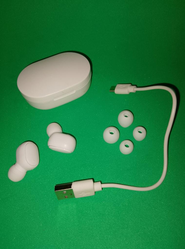 Budget headphones The sound quality is average, but for this price it will do Includes replacement rubbers Case Charging Cable Comfortable, stay in the ear, don't fall out It lasts for two or three hours of charge