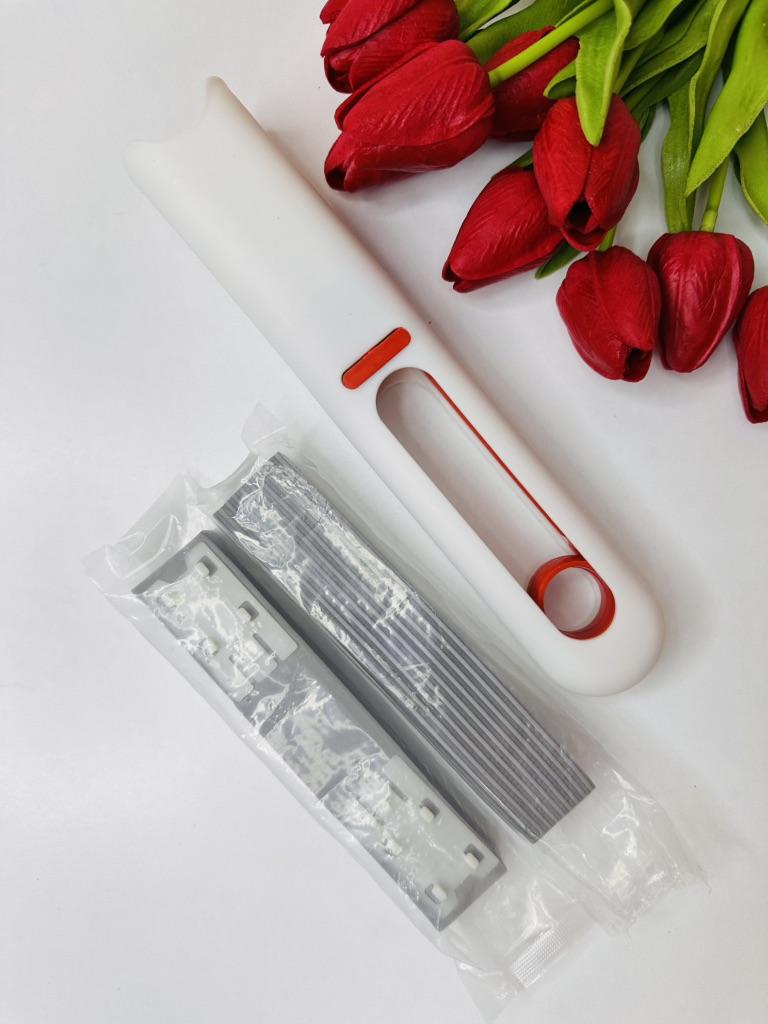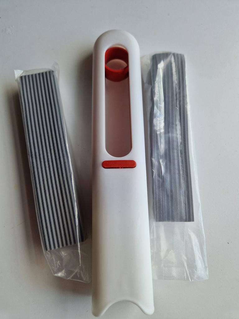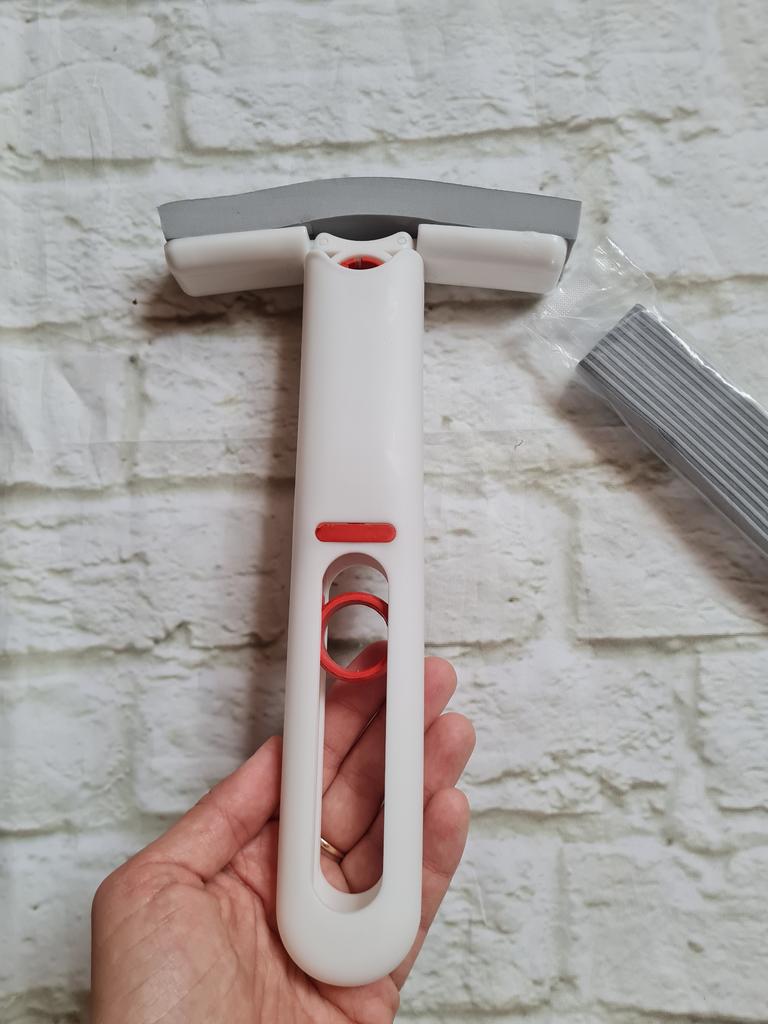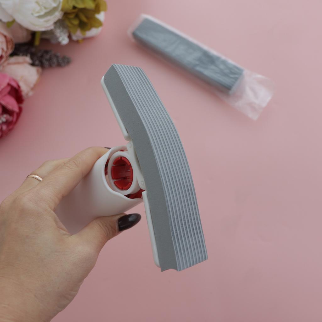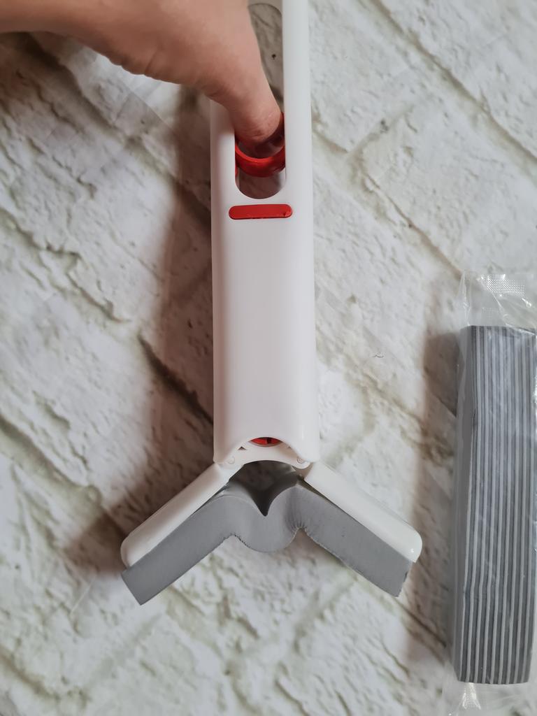 Mini-mop Very convenient for washing surfaces, windows, doors, etc.. Compact, size 27*15.5 cm Includes 2 soft replacement sponges. Lightweight and easy to use. To dispense water, pull the ring upwards. I recommend 🤗