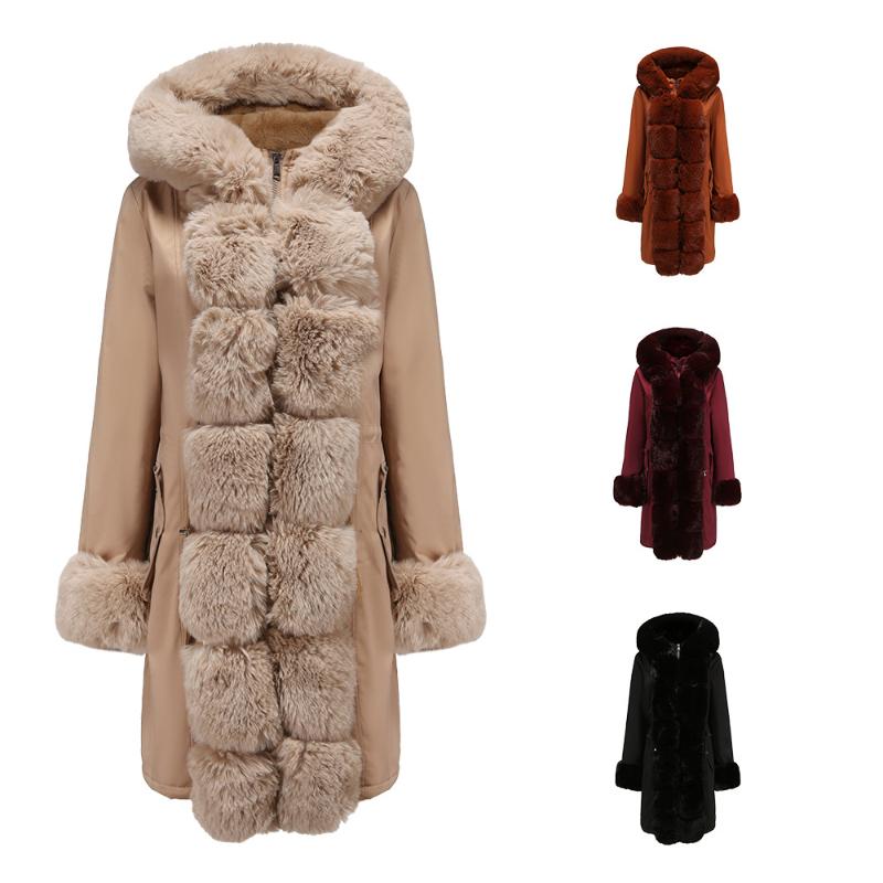 Detachable Fur Collar Mid-length Hooded Warm Cotton Jacket