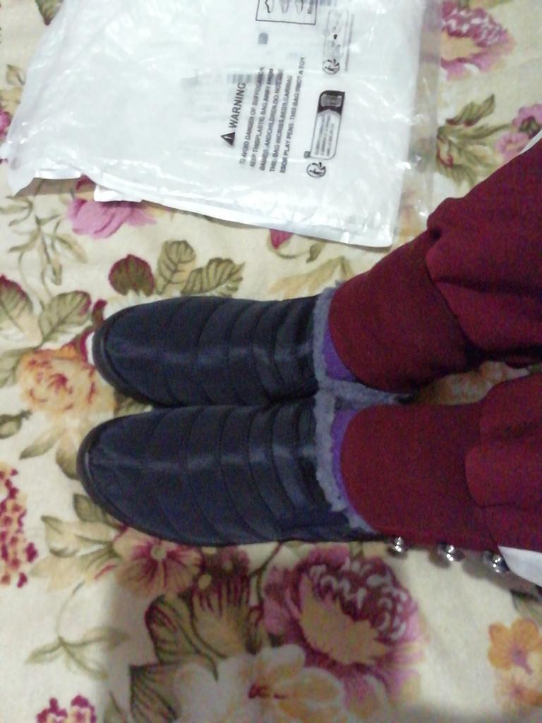 Size 37 is just right. Lightweight, soft. Cheap and cheerful for the winter season.