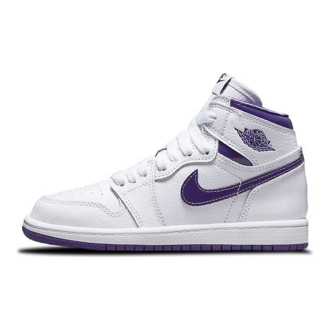 Air Jordan 1 Retro High OG PS Court Purple Kids Sneakers White CU0449-151
