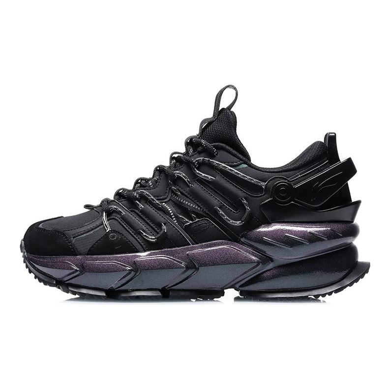 Li Ning Trendy Shock Absorbing Non-Slip Wear-Resistant Low-Top Running Shoes Unisex Sneaker Black Purple ARLR001-1