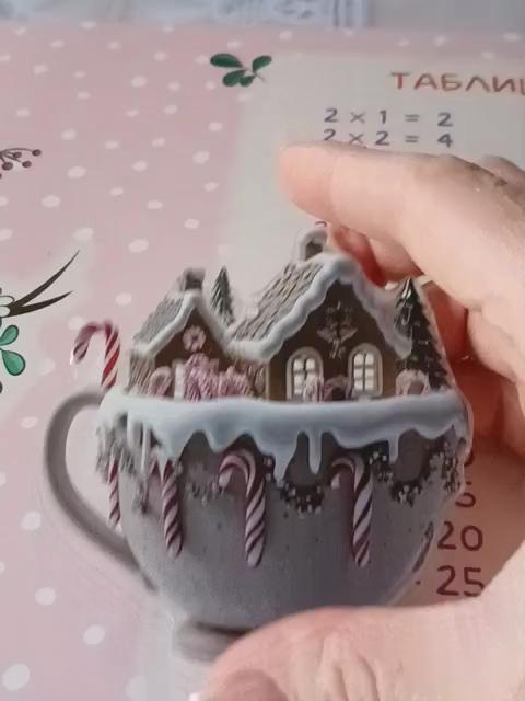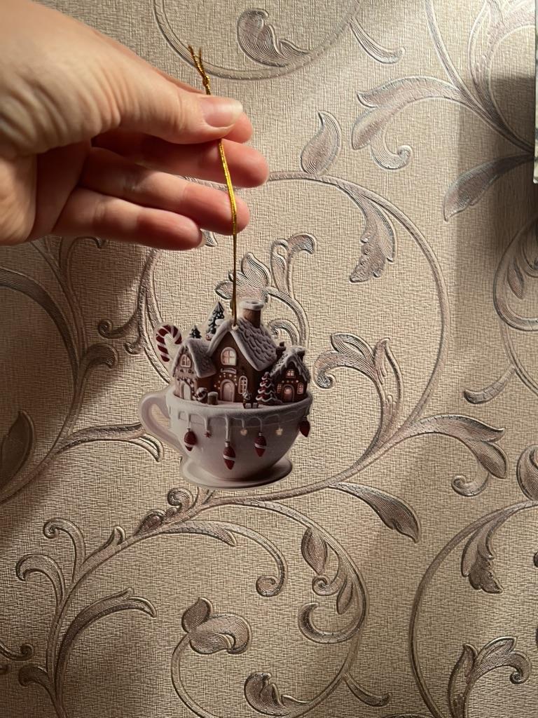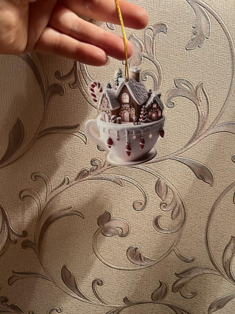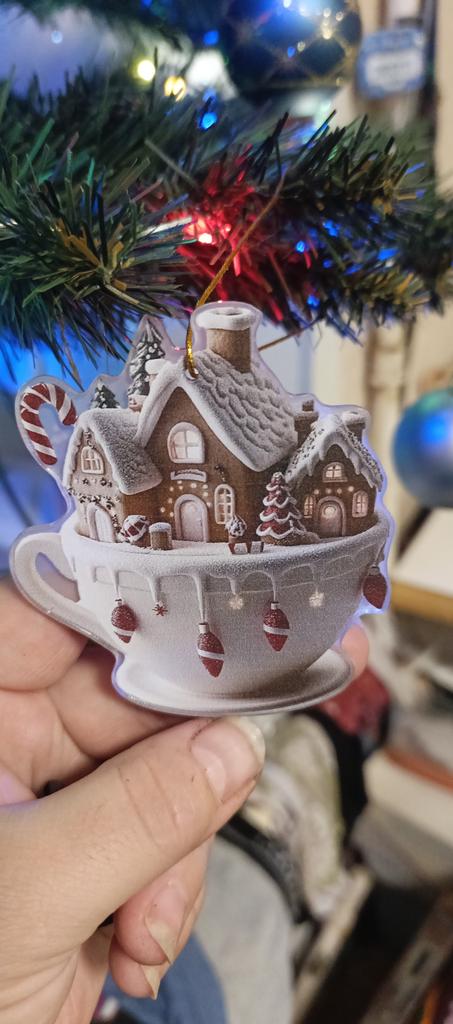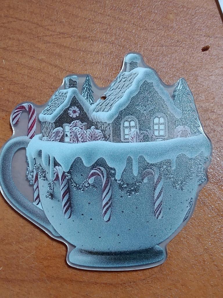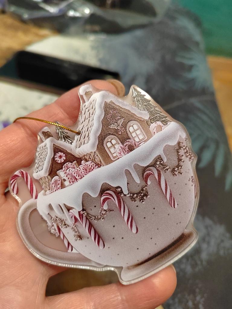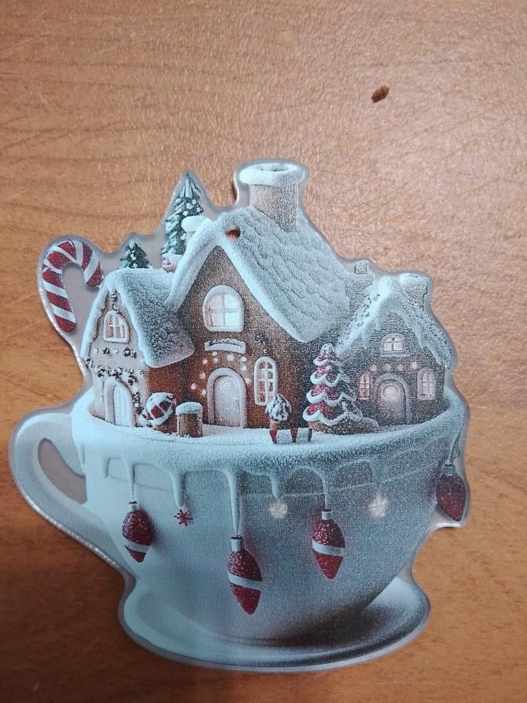 Coffee Cup Ornaments For Christmas Tree 2D Acrylic Christmas Snow Houses Chocolate Mug Pendant Christmas Tree & Car Decor