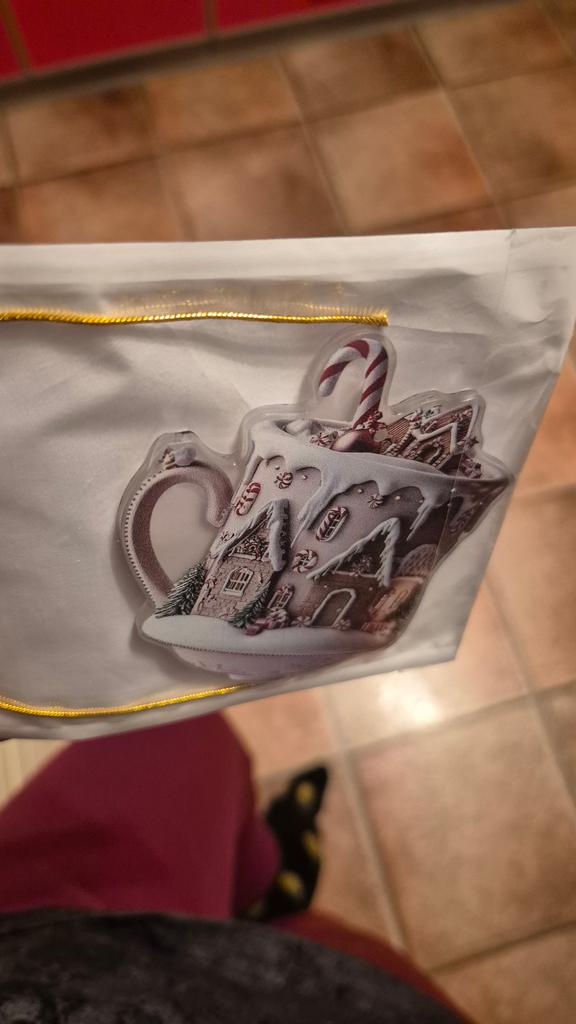 It's unclear what the pendant is - but it's not a Christmas ornament - the picture is on one side, full h....