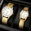 1/2PCS Couple Quartz Watch Fashion Creative Arabic Numerals Round Dial Elastic Band Elegant Couple Wristwatch Gift for Lovers