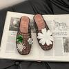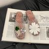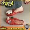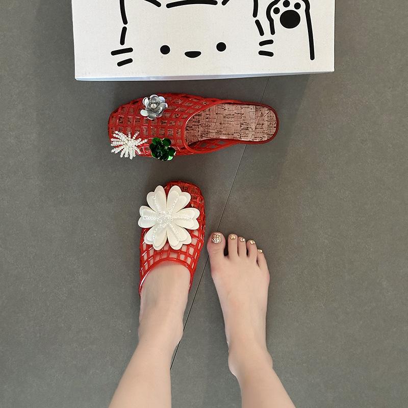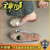 Baotou Half Slippers Korean Version Niche Design Cool Slippers Women's 2025 Summer Hollow Sequins Crystal Sandals Breathable
