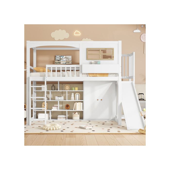 Bunk Bed - MUVOE - 90x200 Cm - White - Safety Rails - Integrated Storage