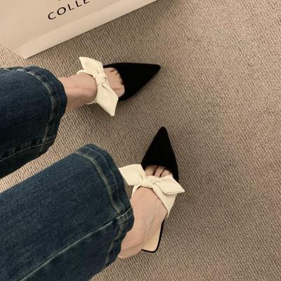 Knock Good-looking~ Baotou Sandals Women's Bow Sandals Wear Pointed Half Slippers