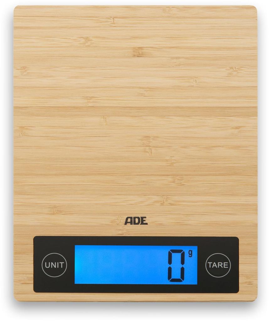 Balance de cuisine digitale - ADE - RAMONA - Bambou - 23 x 18 x 2 cm - Inclus 2 piles Cr2032