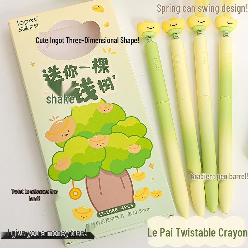 Stress-Relief Money Tree Pen: Fun, Playful Ingot Spring Design, Quick-Drying Student Brush.