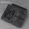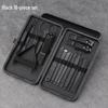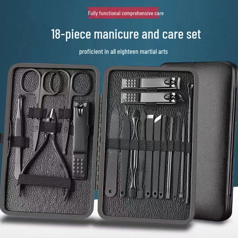 Black Stainless Steel Nail Care Set: 18-Piece Manicure Kit with Clippers, Scissors, Blackhead Remover, Pedicure Knife, and Beauty Pliers.