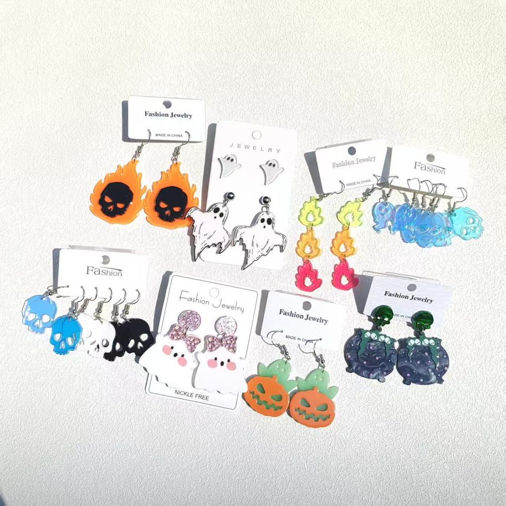 Halloween UFO Ghost Face Pumpkin Head Earrings: Cute, Exaggerated, Scary, Glittery, Bright Earrings for Women