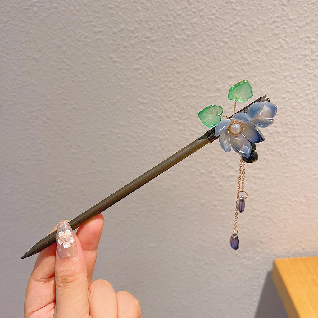 Wooden Hair Sticks Forks Retro Chinese Style Hairpins Forks Colorful Flower Designs Pendant Headpieces Hair Jewelry Ornaments