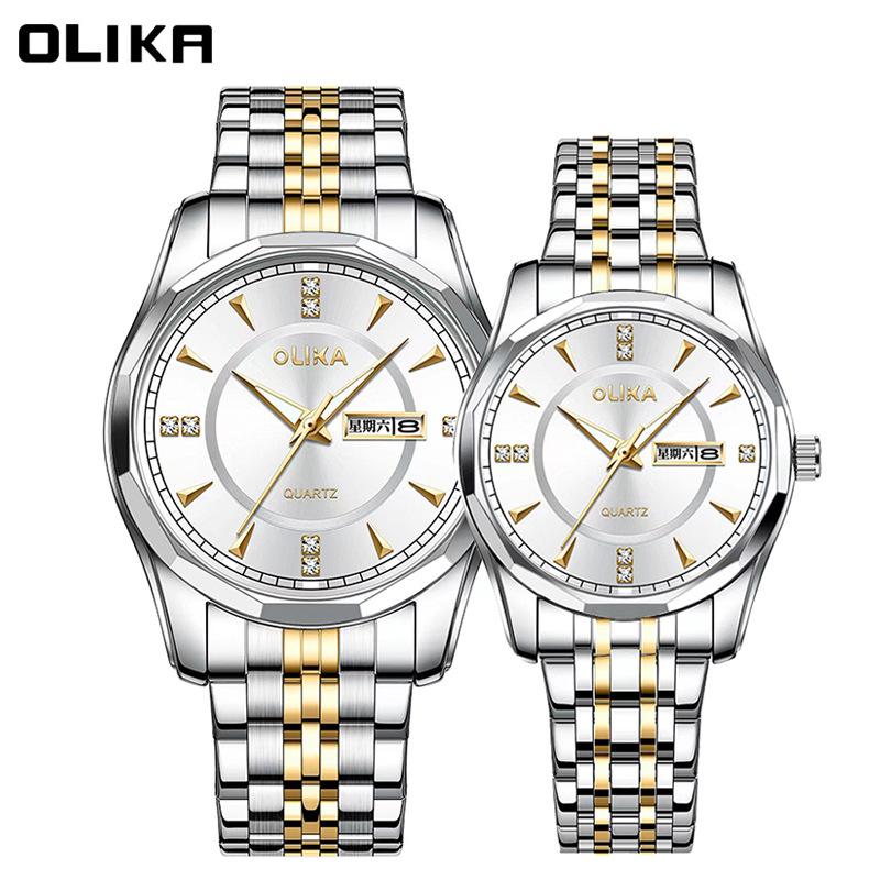 Top Brand Men's and Women's Couple's Watch Waterproof Luminous Quartz Watch Double Calendar Stainless Steel Fashion Watch