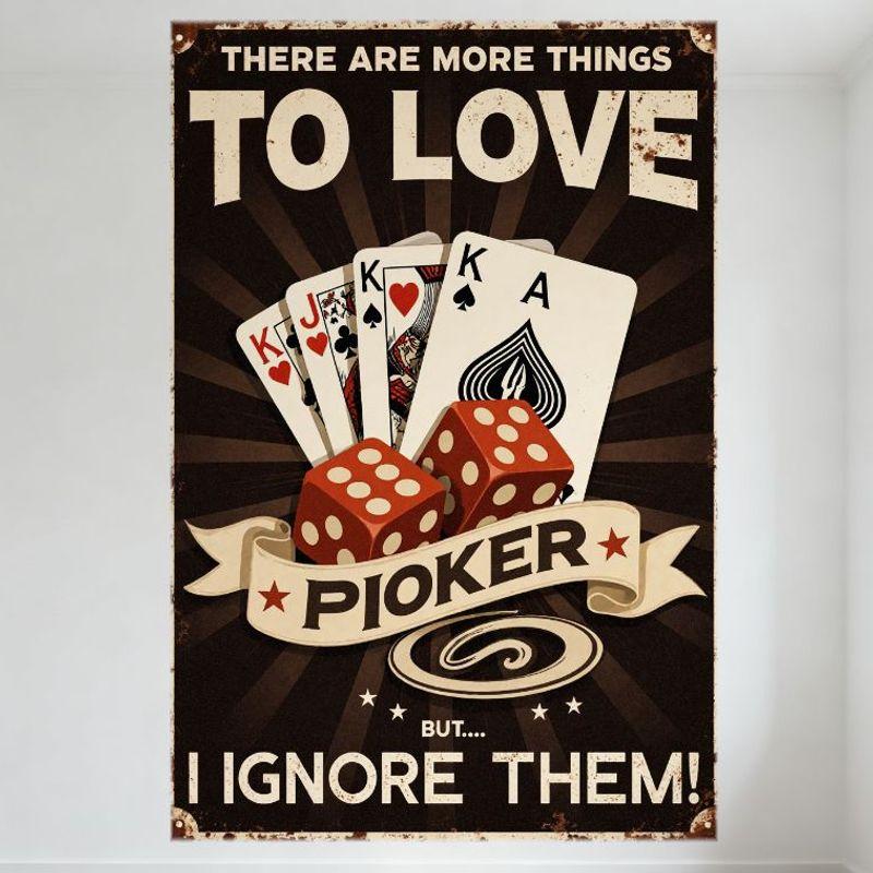 Vintage Poker Gambling Metal Tin Sign - 'There Are More Things To Love BUT I IGNORE THEM!' Retro Distressed Playing Cards Dice D