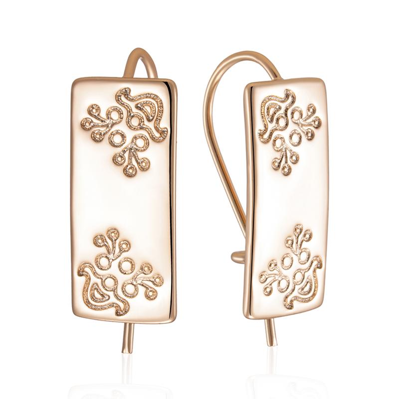 Fashion Glossy Long Drop Earring Women Unusual Square Pattern Rose Gold Color Ethnic Bride Daily Fine Jewelry