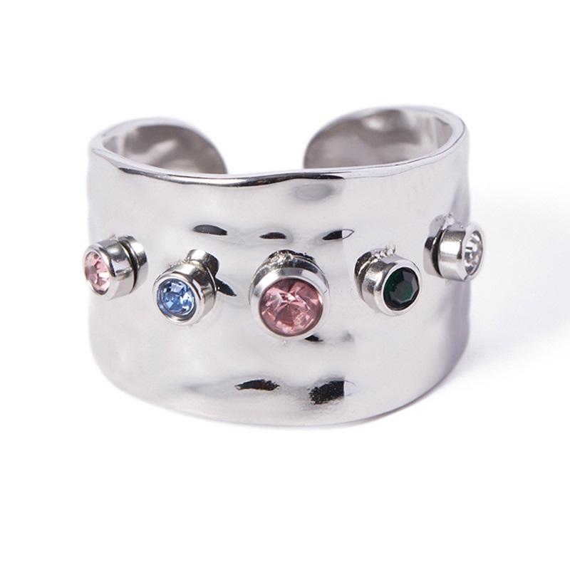 Youthway Colorful Cubic Zircon Stone Crystal Wide Band Jewelry Women Stainless Steel Waterproof Gold Plated Statement Rings