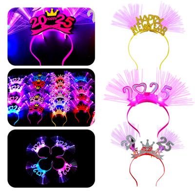 4pcs Illuminated 2025 New Year's Eve Head Boppers 2025 LED Lit New Year Headbands Comfortable Fit Party Hair Accessories