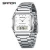 SANDA Neutral Dual Display Clock Waterproof Sports Quartz Watch Luxury Women's Stainless Steel Digital Electronic Watch