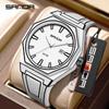 SANDA Fashionable Men's Quartz Watch Waterproof Silicone Strap Unique Scale Calendar Creative Lines Student Watches