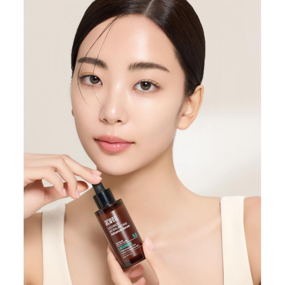 ACWELL Licorice Water pH Balancing Advanced Serum 30ml is a skincare essence based on licorice water extract. This product helps balance the skin's pH, soothing sensitive skin and delivering health. It focuses on reducing skin irritation and strengthening the skin barrier. Suitable for all skin types, it offers a soft feel upon use.