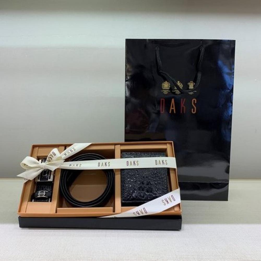 The DAKS ribbon package and shopping bag included Wallet and Belt set (DBWA3E713BK DBBE0E703) features a classic design combined with practicality. This product includes a men’s wallet along with a card holder, providing a functional set that can be used together. The wallet is made of natural leather, offering excellent durability, and it is designed with a convenient 2-compartment structure. The sophisticated black color pairs well with various styles and it measures 11x9cm, fitting seamlessly into pockets.