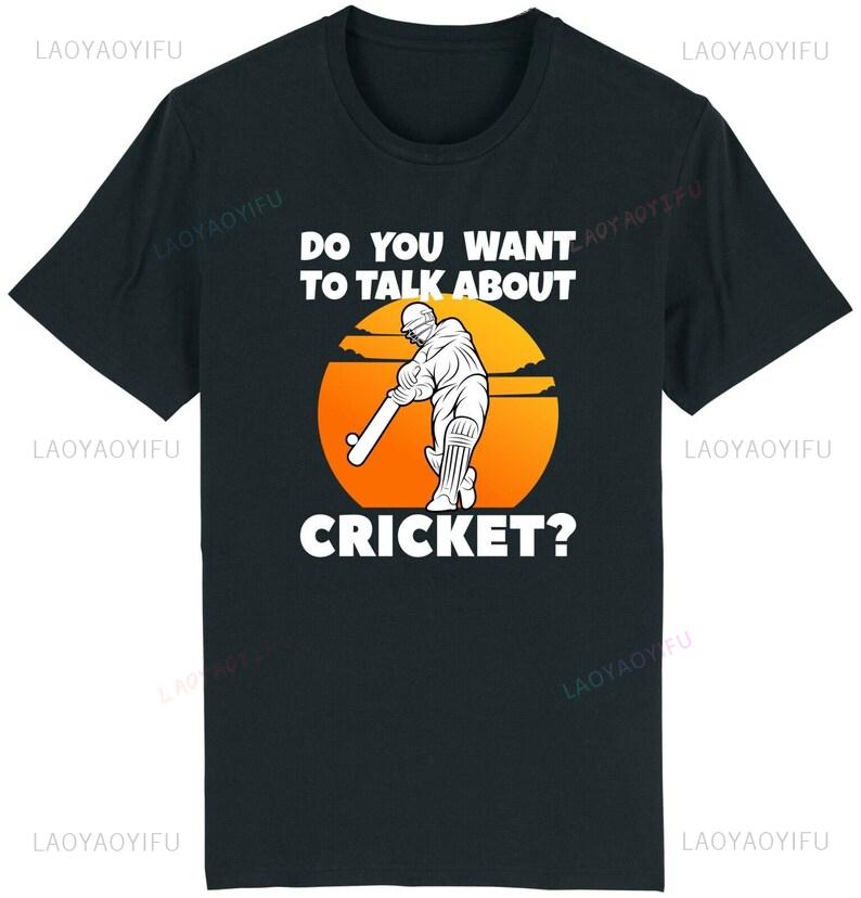 Want To Talk About Cricket Tshirt Funny Cricketer Gift Idea Fathers Day Dad Clothes Fashion Printed Man Summer Shortsleev Tee
